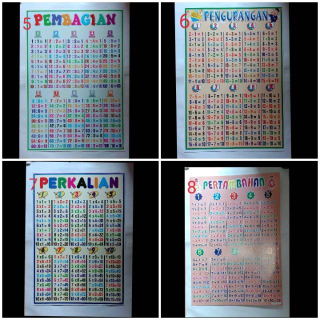 POSTER PEMBELAJARAN EDUKASI PERKALIAN, PEMBAGIAN,PENGURANGAN,DAN PENAMBAHAN