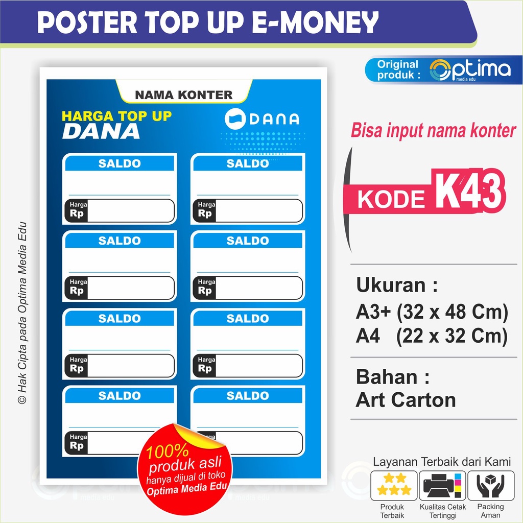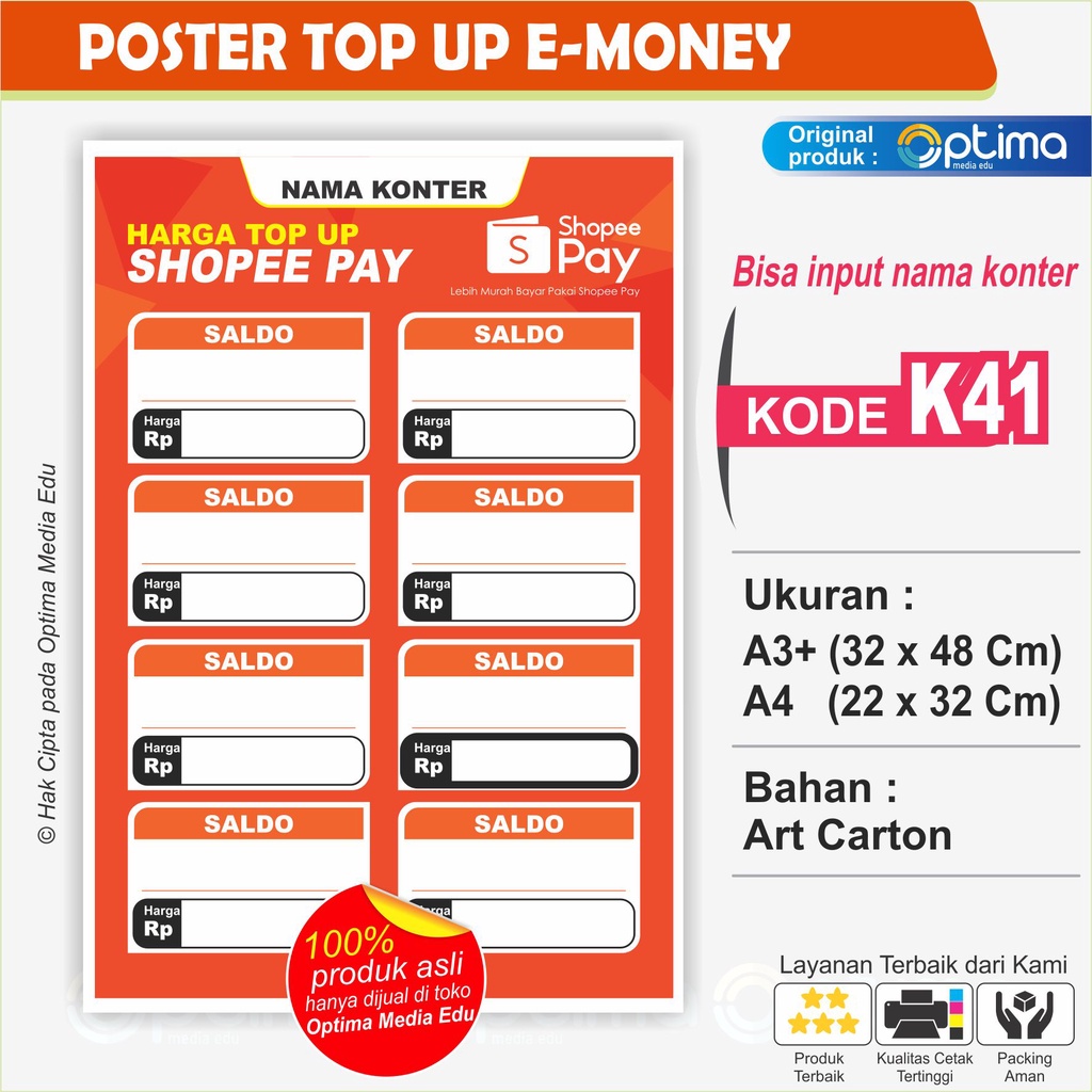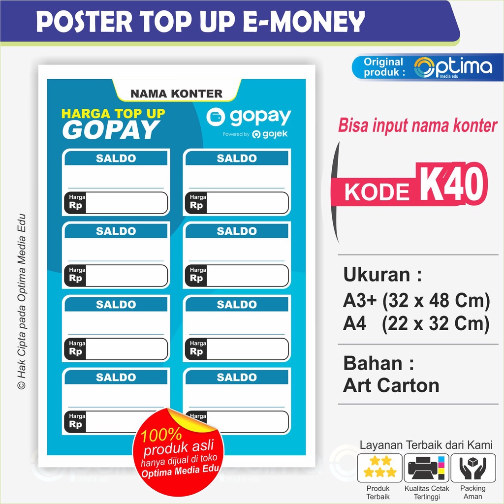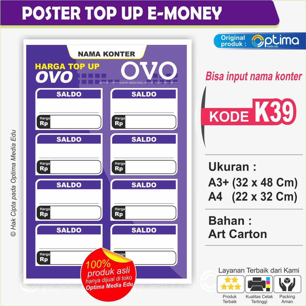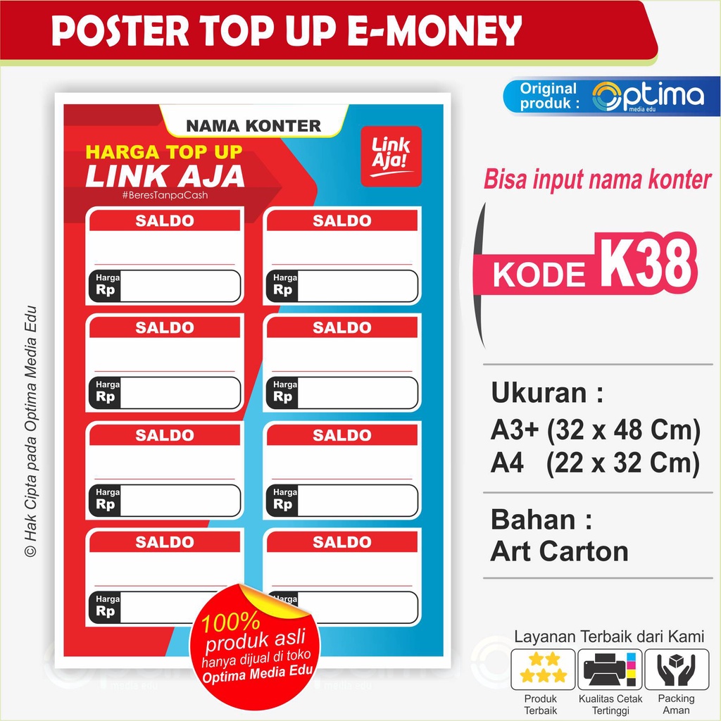 POSTER / STIKER DAFTAR HARGA ISI ULANG TIAP MERCHANT untuk usaha konter