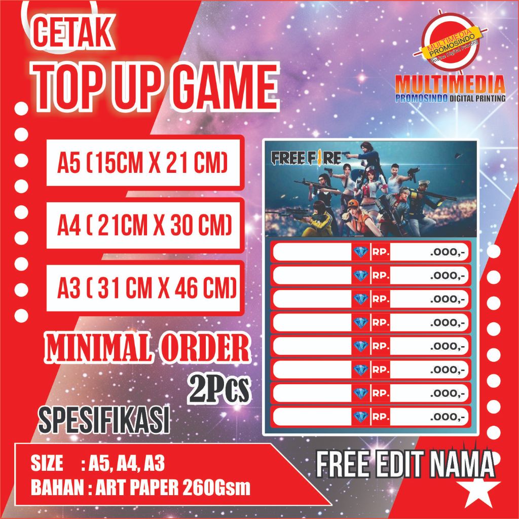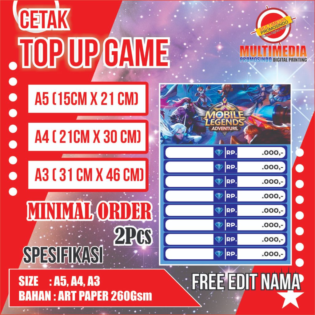 POSTER TOP UP GAME/A3 GAME/LABEL TOP UP GAME