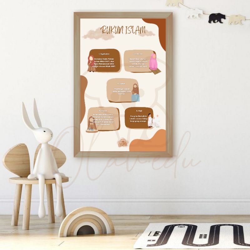 POSTER WIPE AND CLEAN - SERI ISLAM RUKUN ISLAM DAN IMAN AESTHETIC BOHO EDUKASI ANAK LAMINASI GLOSSY A3+ ART PAPER 260