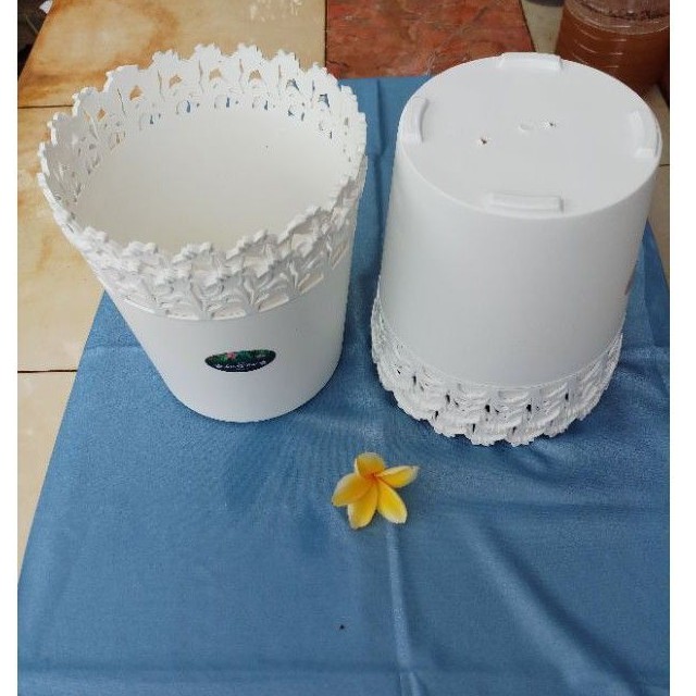 POT BULAT KOREA. POT BUNGA BULAT KOREA 25 PUTIH Lucky Star 5372 TEMPAT DEKORASI TANAMAN PLASTIK 25 CM