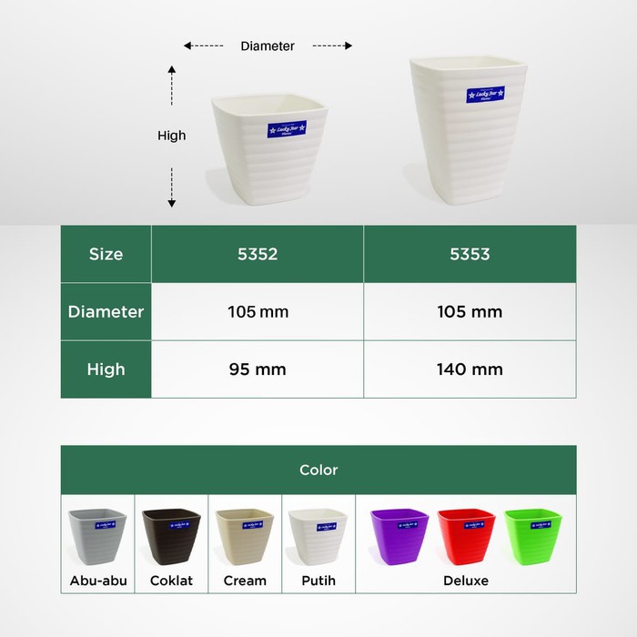 POT BUNGA AERIS/POT TANAMAN HIAS/POT SEGI LUCKY STAR 5253/5353