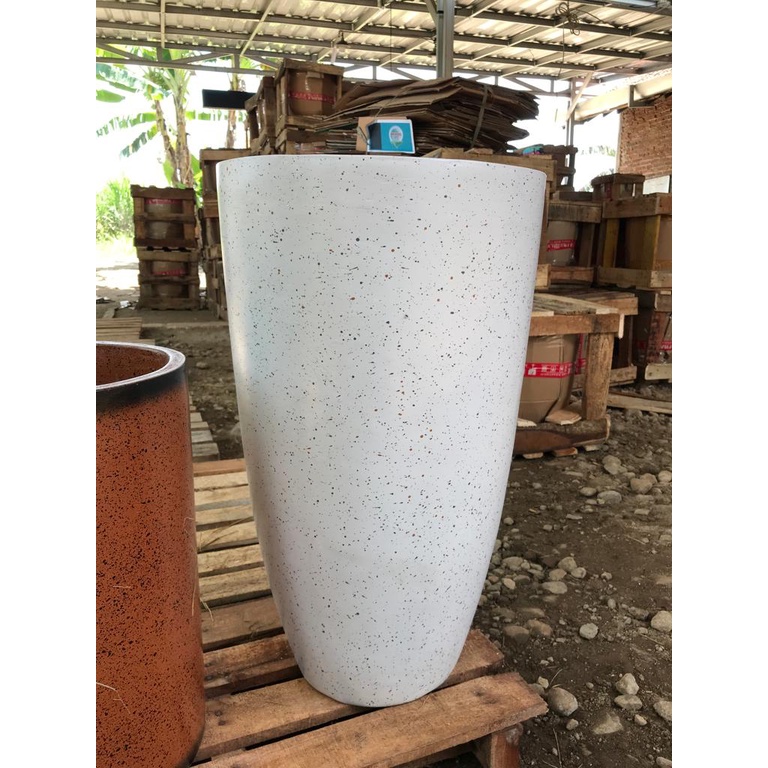 POT BUNGA JUMBO TINGGI 60 CM MODEL TERASO SEMEN TERAZZO MINIMALIS TERASO INTERIOR