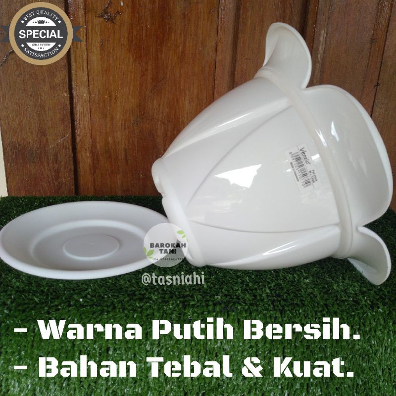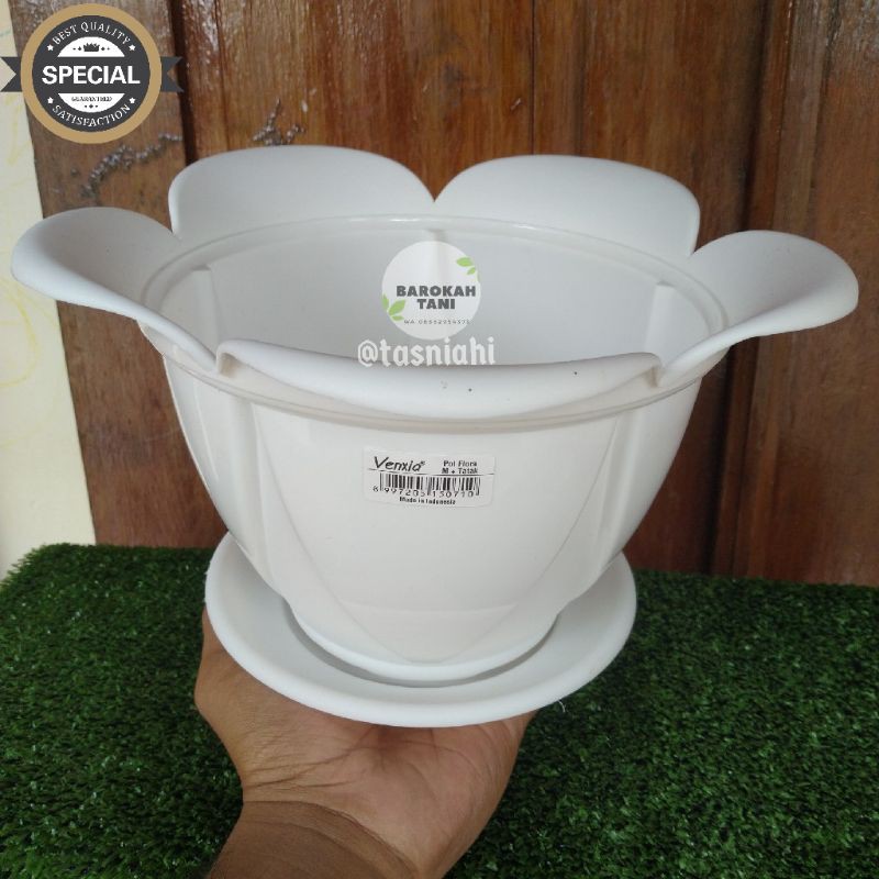 POT BUNGA PUTIH FLORA MEDIUM + TATAKAN VENXIA WARNA PUTIH BERSIH HARGA TERMURAH DAN BERKUALITAS