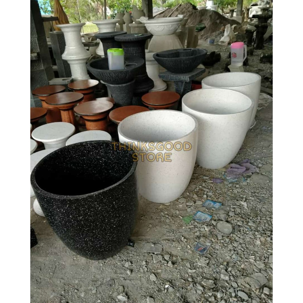 POT BUNGA TANAMAN BESAR 60CM MINIMALIS SEMEN MURAH MEWAH VINTAGE PUTIH MARMER+INVOICE
