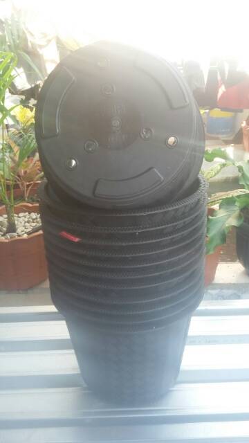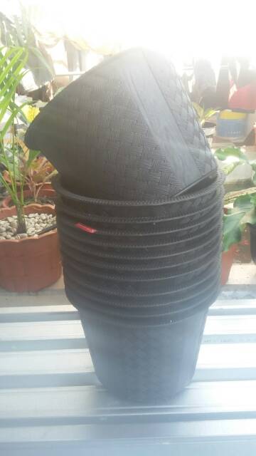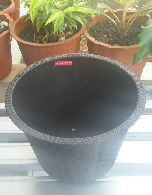 POT TANAMAN PLASTIK ANYAM 30CM POT BUNGA MOTIF ANYAM 30 CM HITAM - CJP