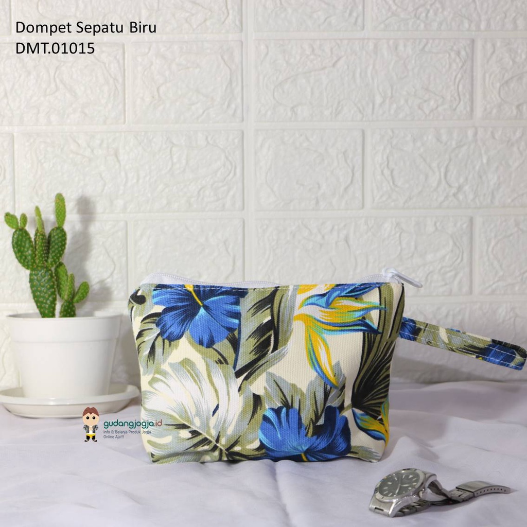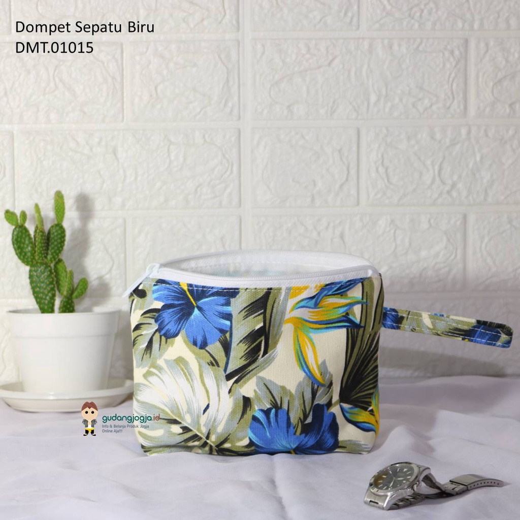 POUCH KANVAS DOMPET BAHAN KANVAS MOTIF BUNGA SEPATU BIRU. Gudangjogja.id
