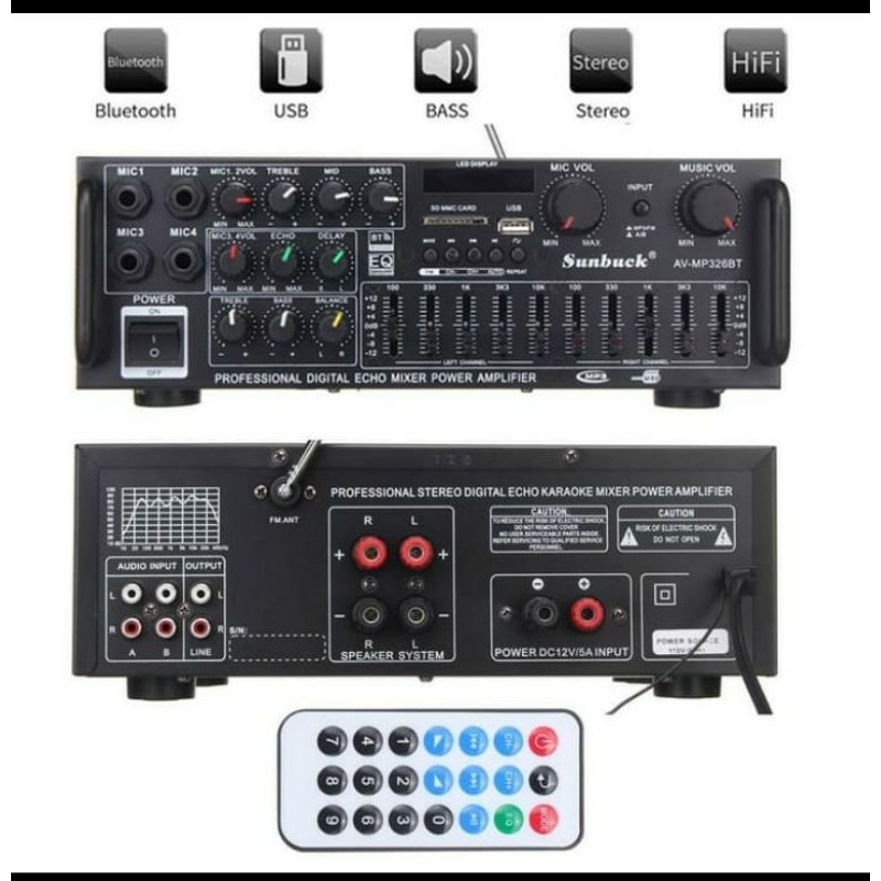 POWER AMPLI 2000 WATT SUNBUCK BLUETOOTH EQ AUDIO HOME TEATHER / AMPLI KARAOKE 2000W PROFESIONAL SOUND SYSTEM
