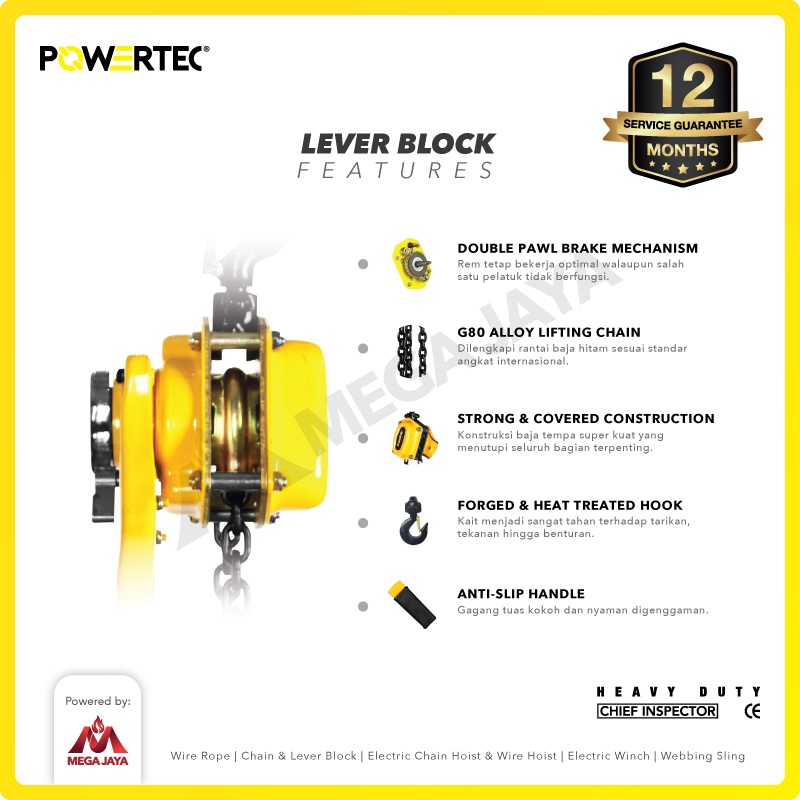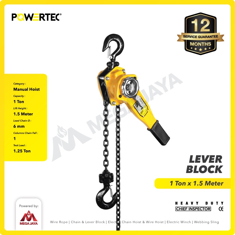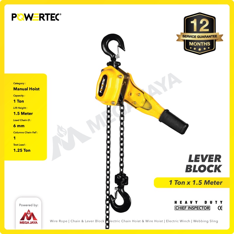 POWERTEC Lever Block / Lever Hoist 1 Ton x 1.5 Meter