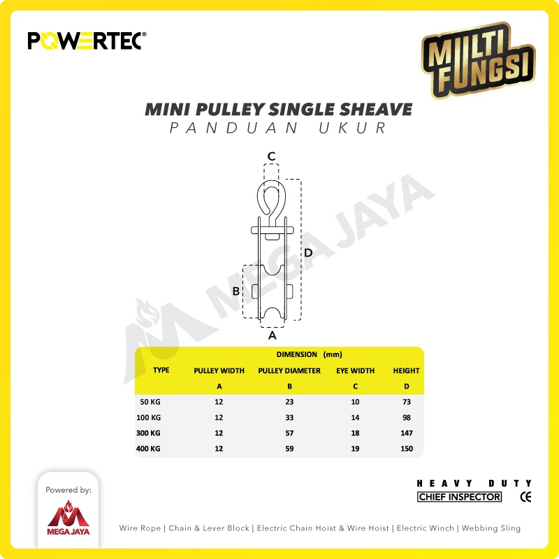 POWERTEC Mini Pulley Katrol Kerekan 100kg 12mm - 1 Sheave