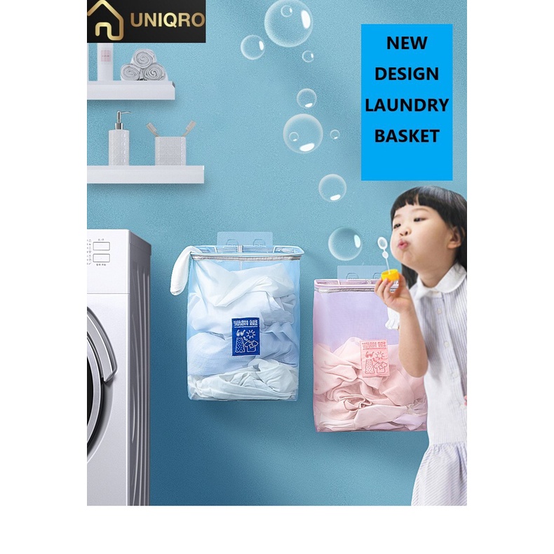 PP-001 Keranjang baju kotor laundry keranjang cucian pakaian kotor laundry basket anti jamur anti lembab bisa digantung tempel tanpa bor tanpa paku minimalis estetik