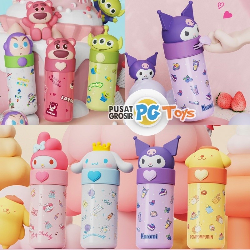 PPG - Botol Minum Termos Stainless 350ML Motif Karakter Sanrio Lisence My Melody Cinnamoroll Kuromi Pompompurin Buzz Aliens Toy Story Termos Vacuum