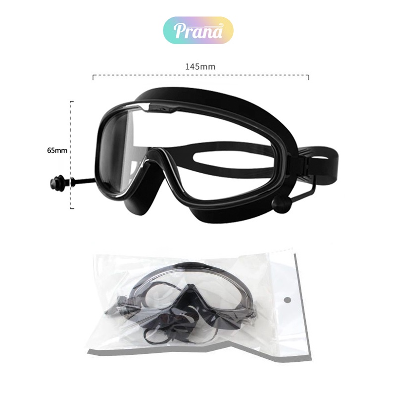 PRANA Kacamata Renang Dewasa Swimming Big Frame Anti Kabut HD + Penyumbat Telinga PN-FBA5036