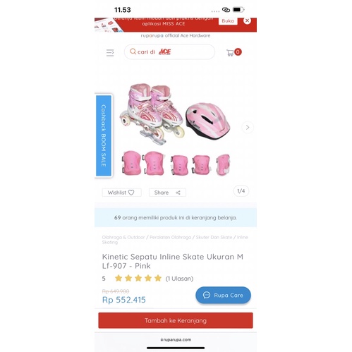 PRELOVED SEPATU RODA ANAK KINETIC ACE HARDWARE