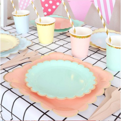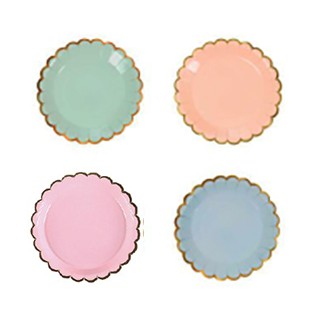 PREMIUM 10pcs Paper plate macaroon gold list 18cm /piring cups kertas motif macaroon pastel