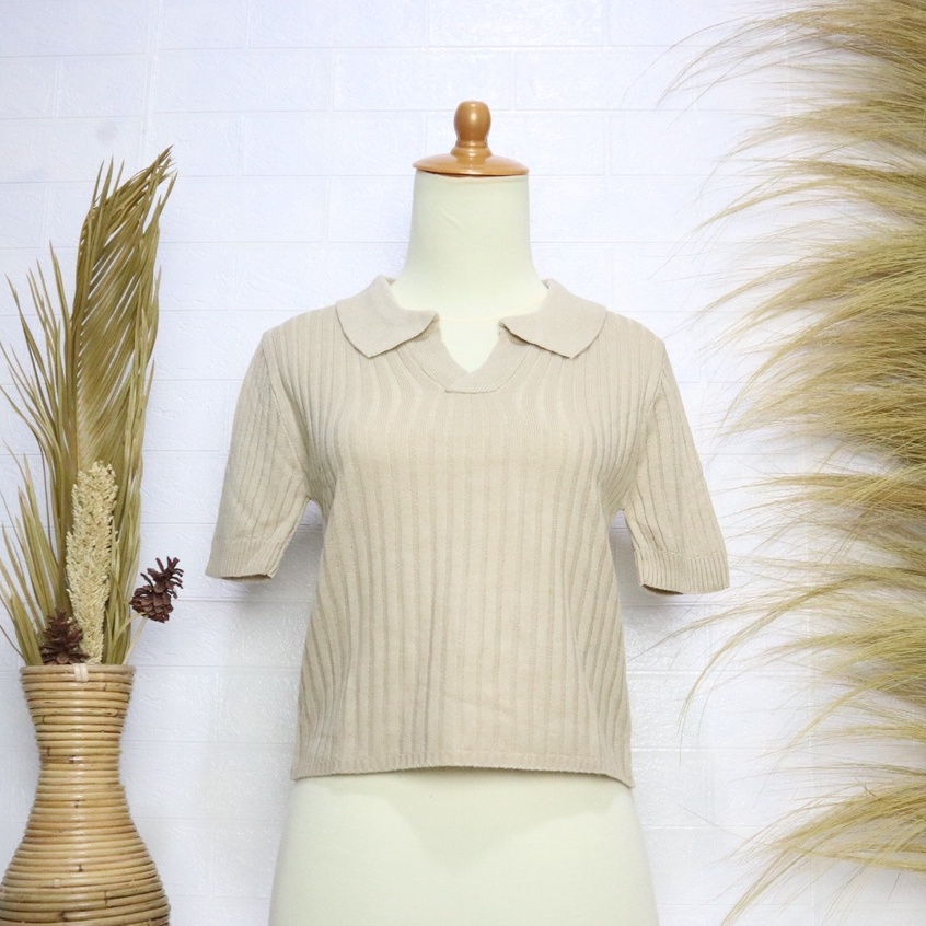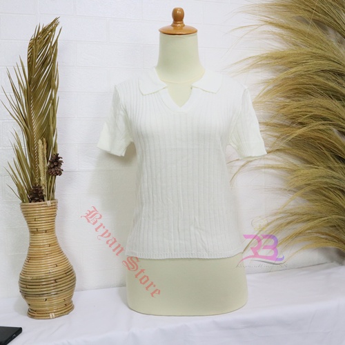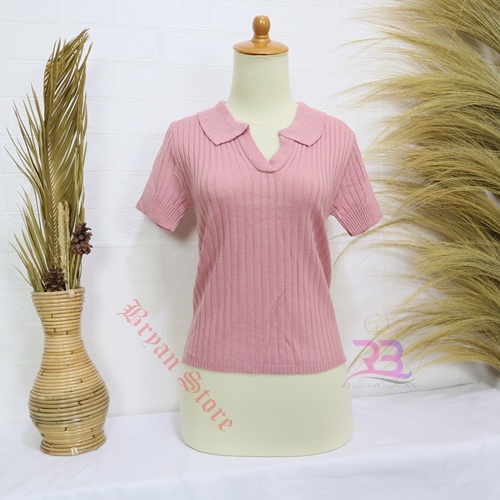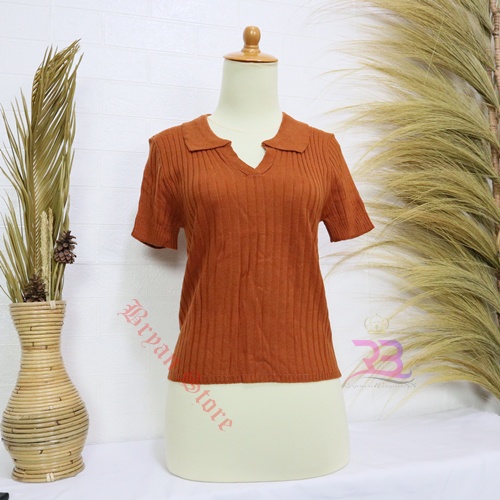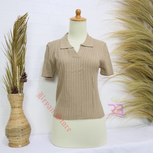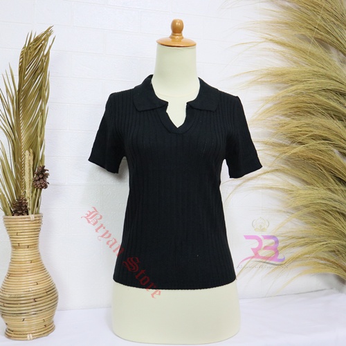 PREMIUM-Atasan Kerah polo Rajut / Korean Vneck Kra Blouse / Polo Shirt Atasan Wanita lengan Pendek