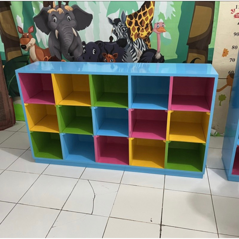 PREMIUM LOKER RAK BUKU SEKOLAH PAUD TK SD LOCKER BARANG TAS STORAGE WARNA WARNI BOX COLORFUL TINGKAT SUSUN KOTAK LEMARI LACI SCHOOL KIDS ANAK WOODEN KOKOH JUMBO CABINET