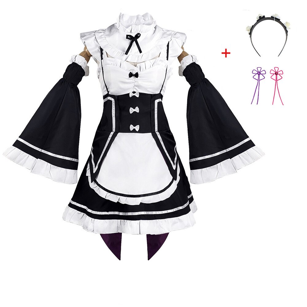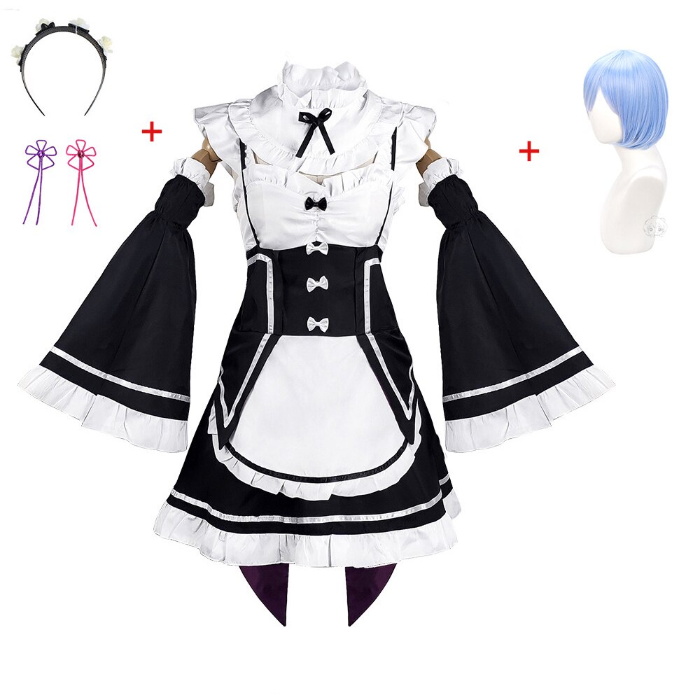 PREORDER Anime Maid Rem Ram Cosplay Costume Re:zero Kara Hajimeru Isekai Seikatsu Maid Dress Wig Party Costume