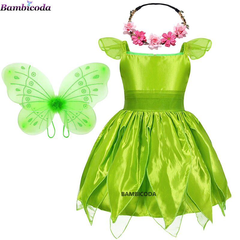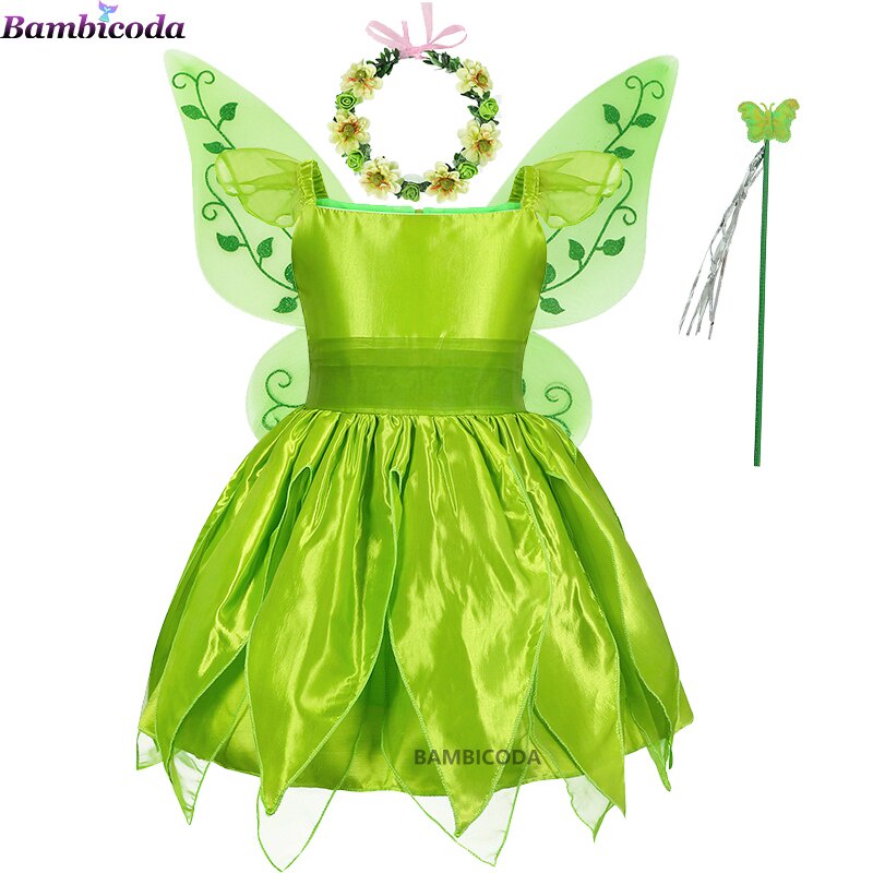 PREORDER Girls Tinkerbell Princess Dress Costumes with Wings Sets Child Halloween Cosplay Flower Fairy Costume Kids Elves Party Clothes