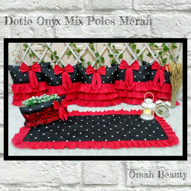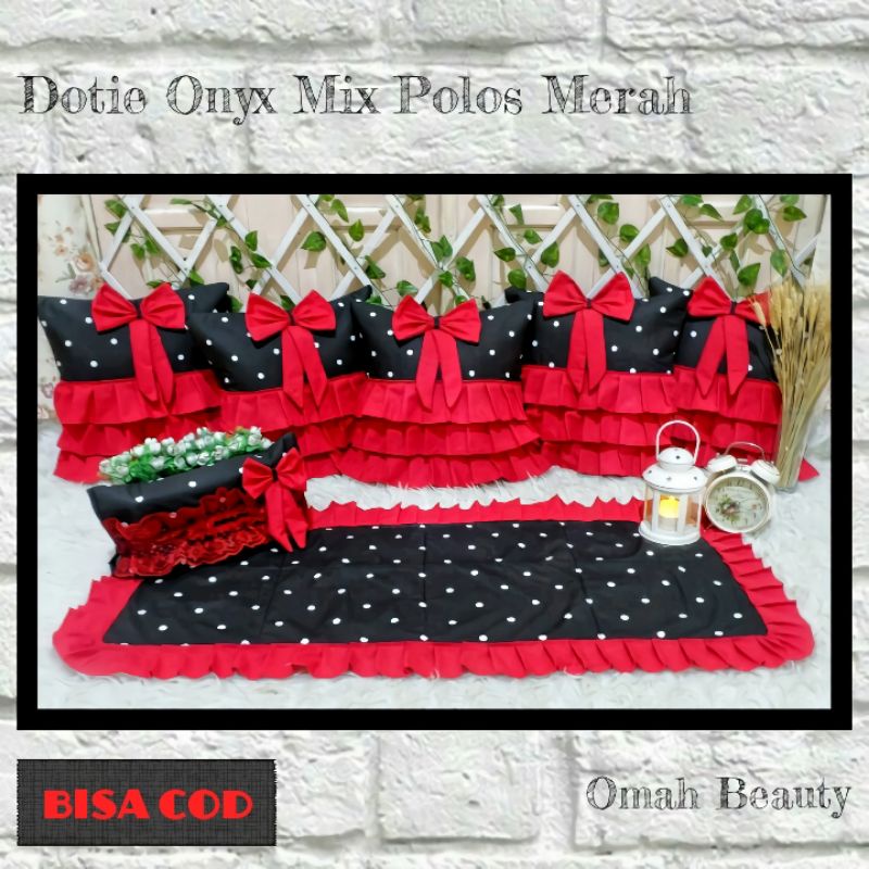 PREORDER Sarung Bantal Sofa Kursi Abstrak Minimalis / Sarung Bantal Rumbai Pita Rok Susun / Set Ruang Tamu Dotie Polkadot Hitam Polos Merah / Home Set Homeset Minimalis Modern Aesthetic Nordic Scandinavian / Home Decor Homedecor