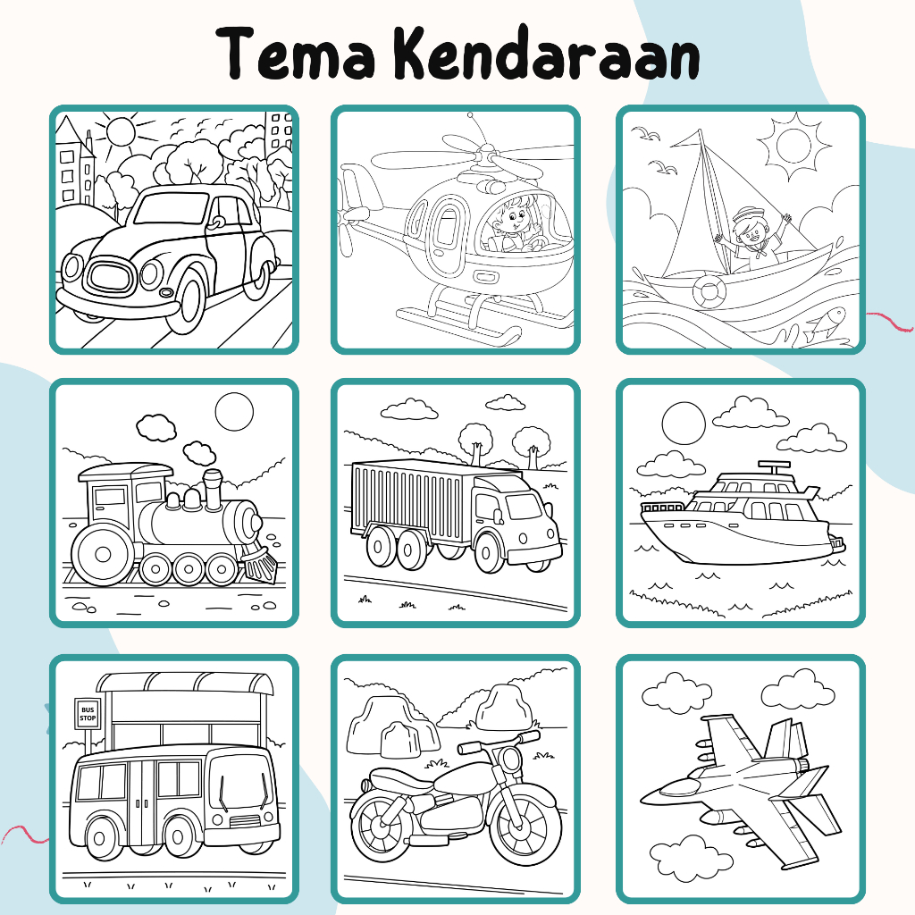 PRINTABLE Lembar Mewarnai ada 10 Tema untuk anak TK PAUD SD / Worksheet Aktivitas Edukatif Anak Usia 2 3 4 5 6 tahun