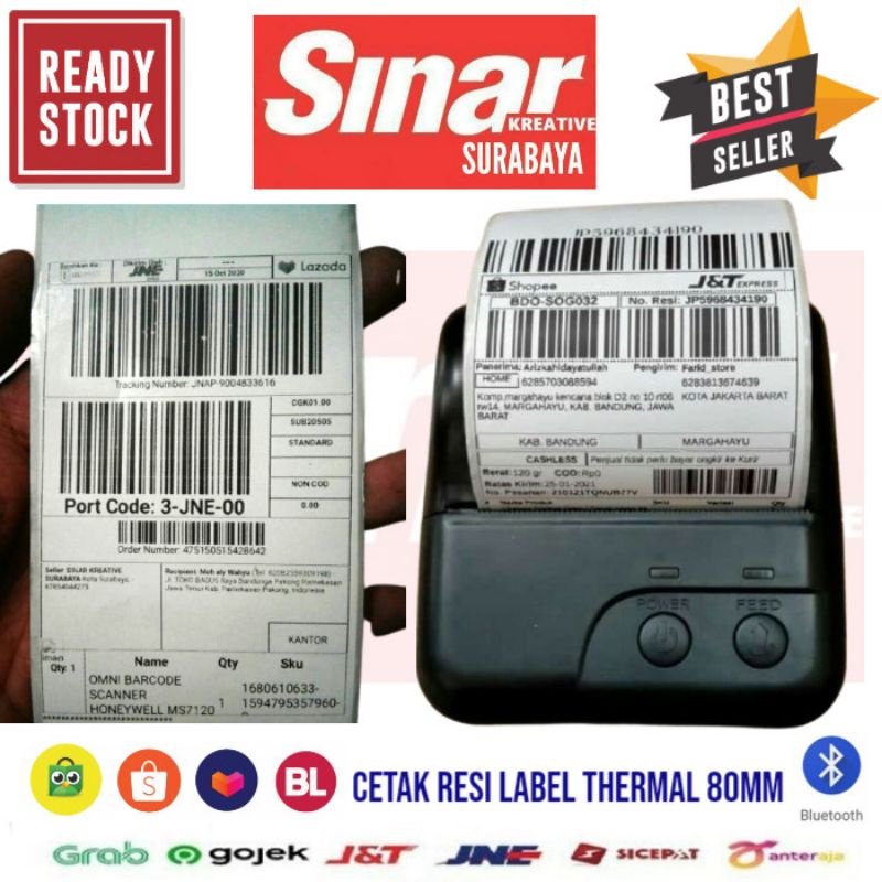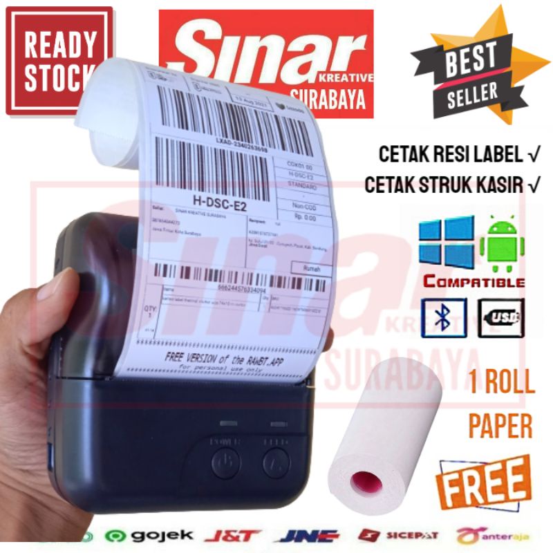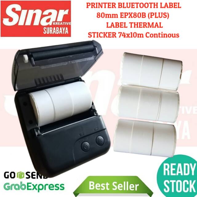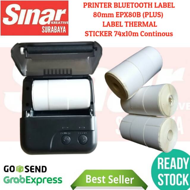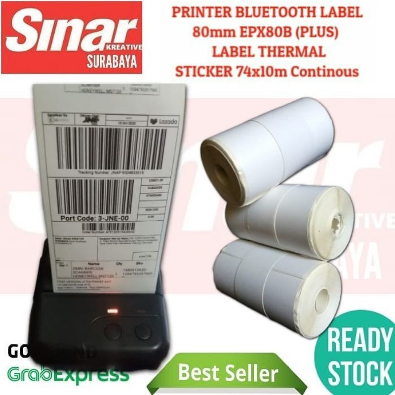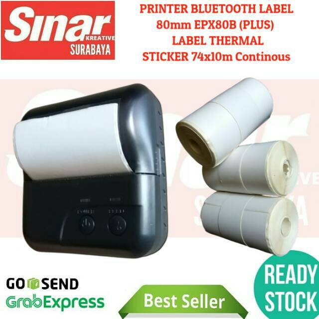 PRINTER BLUETOOTH LABEL THERMAL STICKER 80mm EPX80B + KERTAS LABEL 74x10 CONTINOUS | CETAK RESI