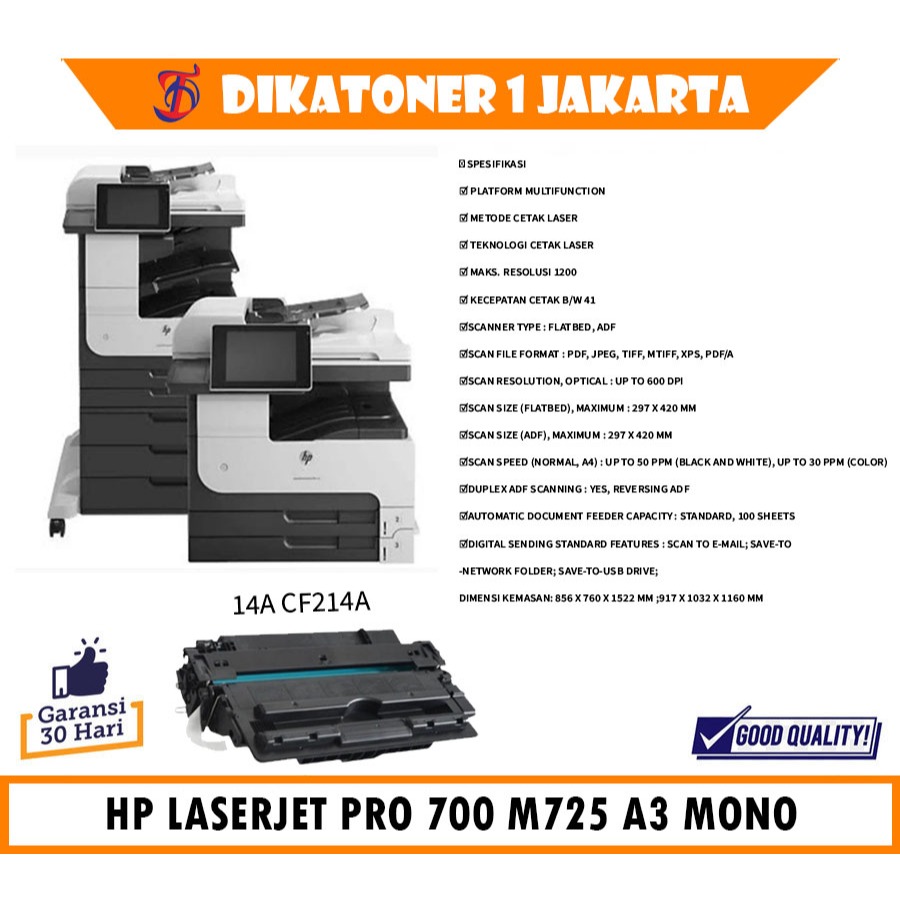PRINTER HP LASERJET PRO 700 MFP M725 A3 MONO