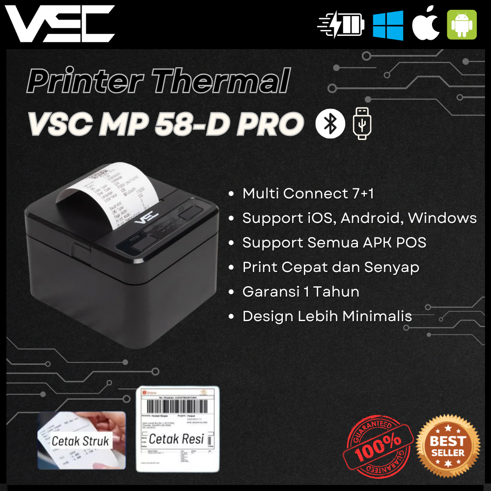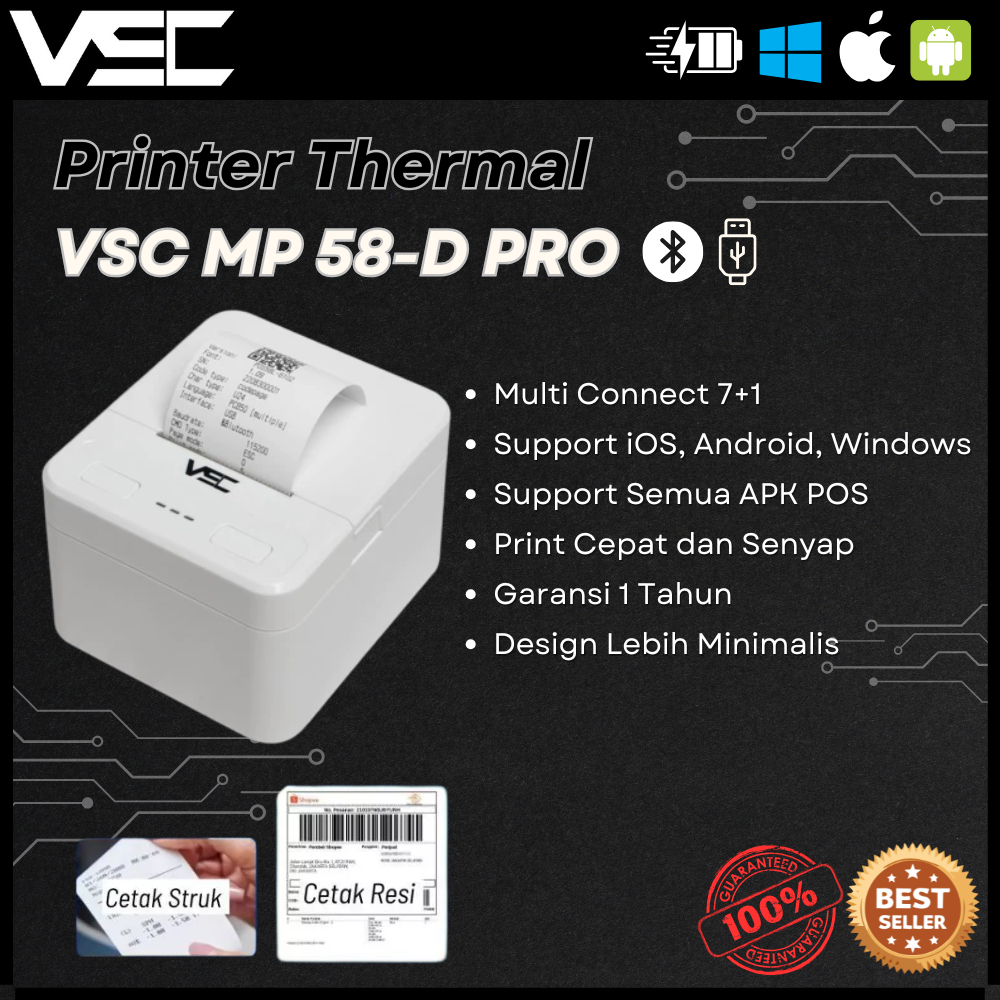 PRINTER THERMAL BLUETOOTH VSC TM-58D PRO RPP02 - CETAK ALAMAT - Hitam - Putih