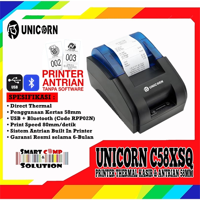 PRINTER USB BLUETOOTH KASIR UNICORN PI58BT / XP58IIZ / C58XSQ SUPPORT CASH DRAWER