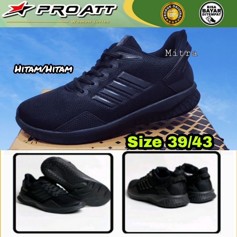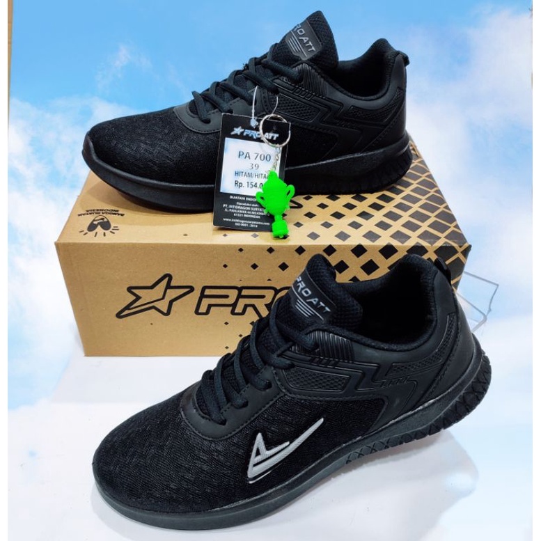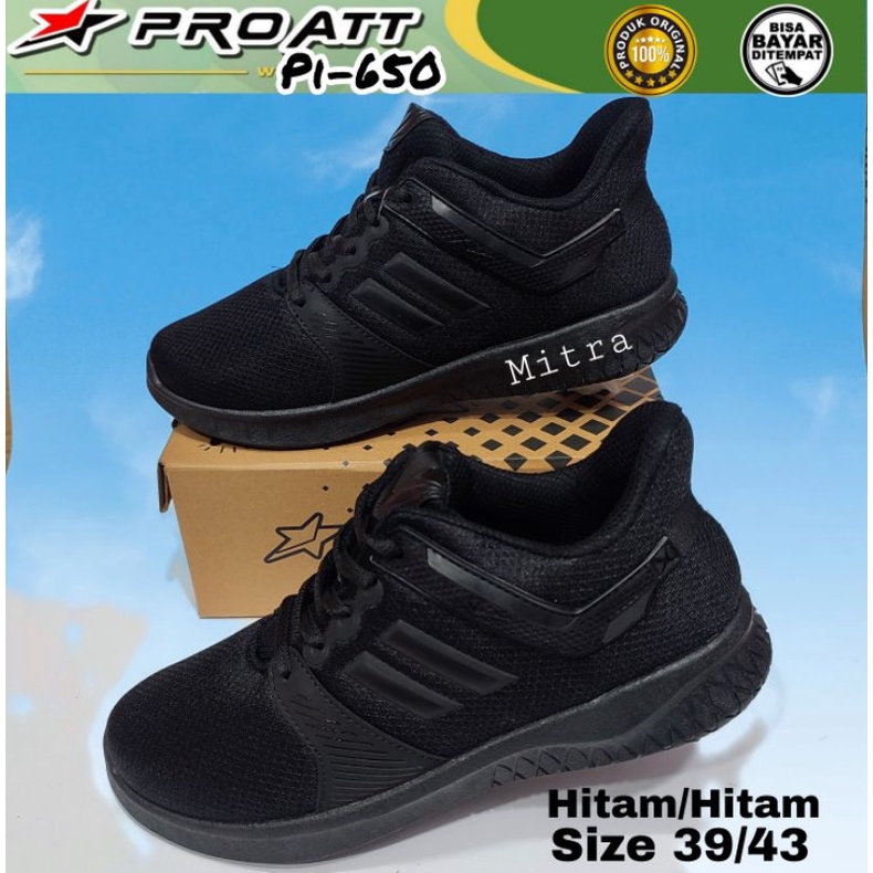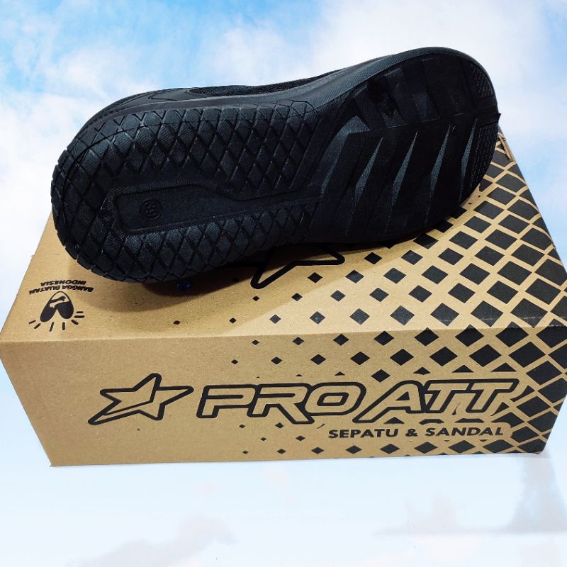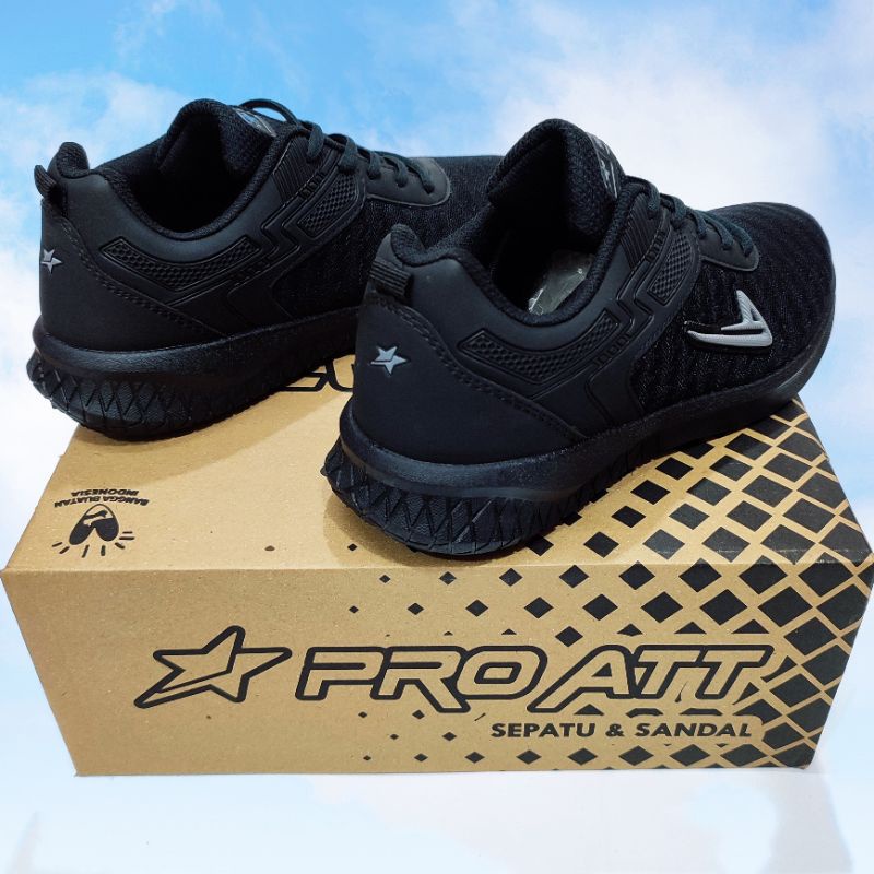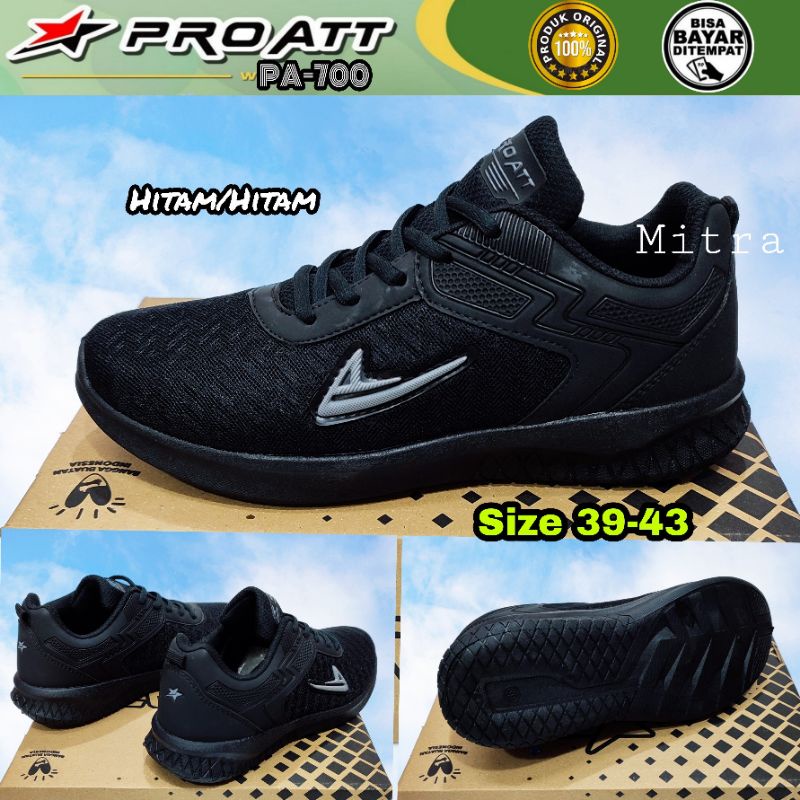 PRO ATT PA 700 / Pi 600 Original Sepatu Sekolah Olahraga Sport Kerja Pria Cowok Kekinian Black Size 39 s/d 43 Murah Terbaru - Hitam Polos
