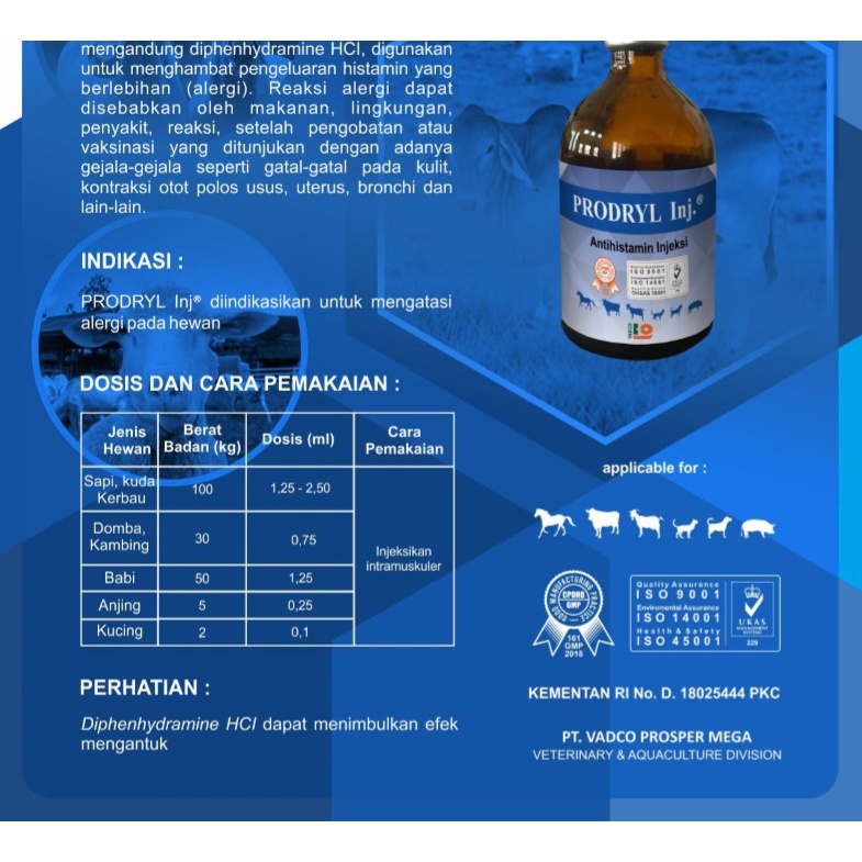 PRODRYL INJ 100ML BY VADCO | ANTIHISTAMIN INJEKSI | MENGATASI ALERGI PADA HEWAN | mirip VETADRYL SANBE