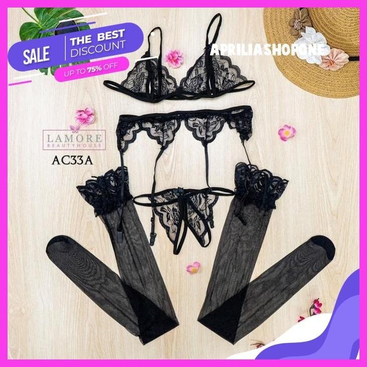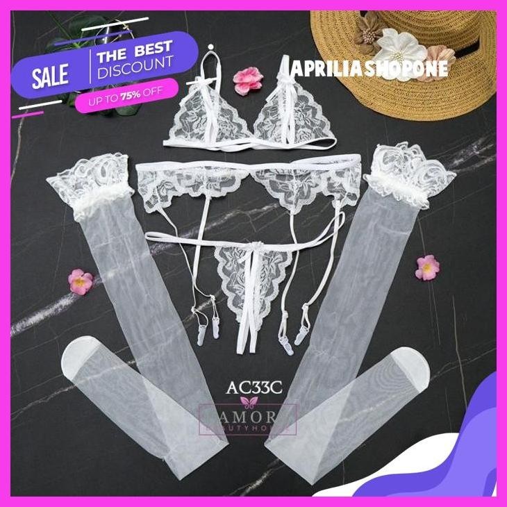 PRODUK TERBAIK STOCKING + BH CD SEKSI BRA SET + SABUK PAHA LACE PINK ACD