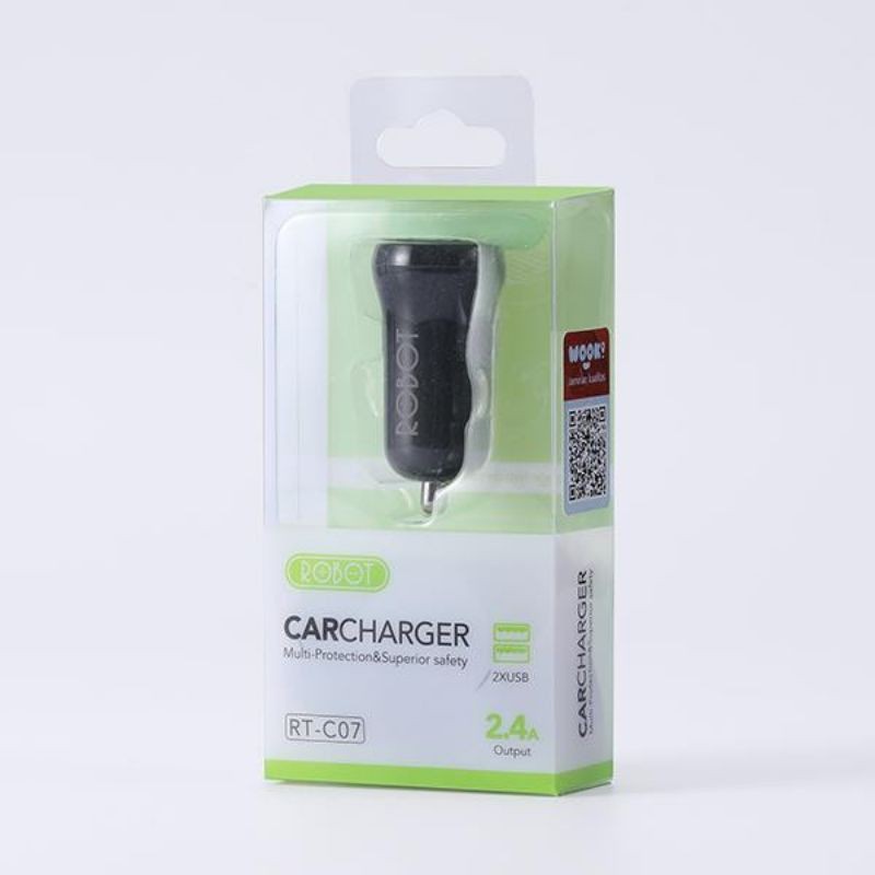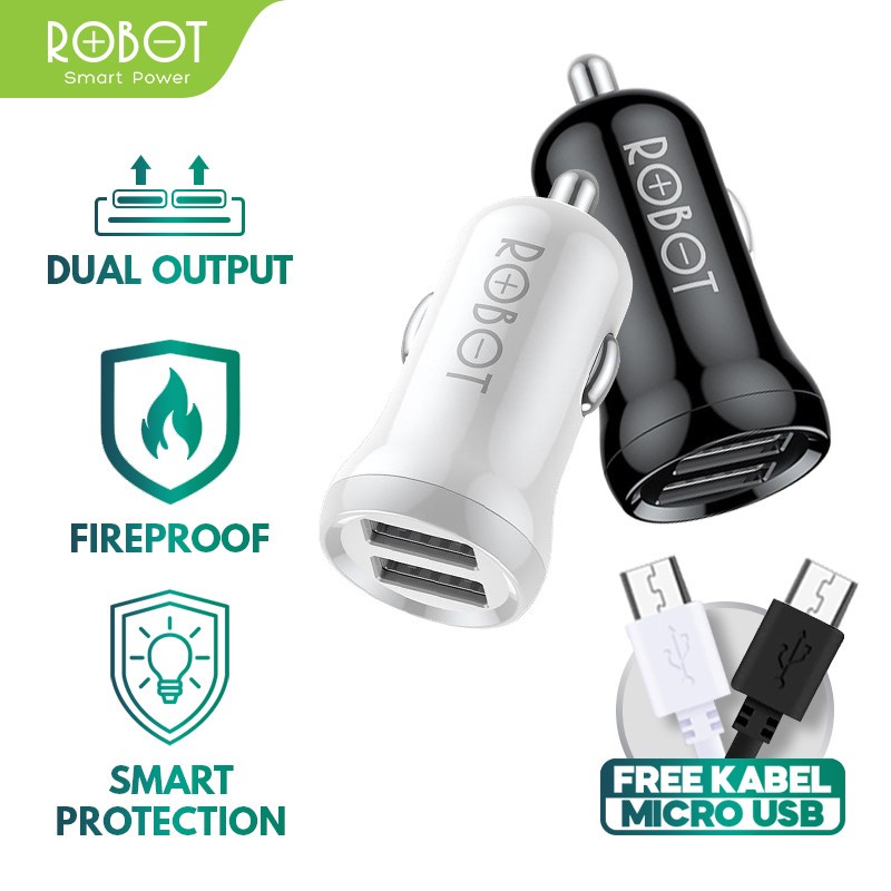 PROMO!! ROBOT RT-C07 RT C07 Car Charger Pengisian Dual Output 2,4A Free Kabel Micro USB