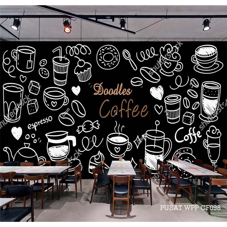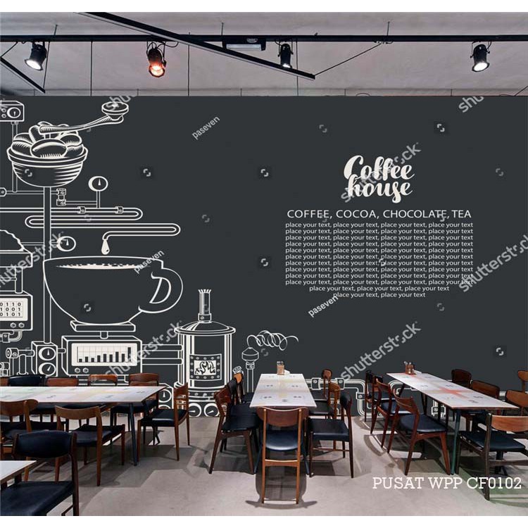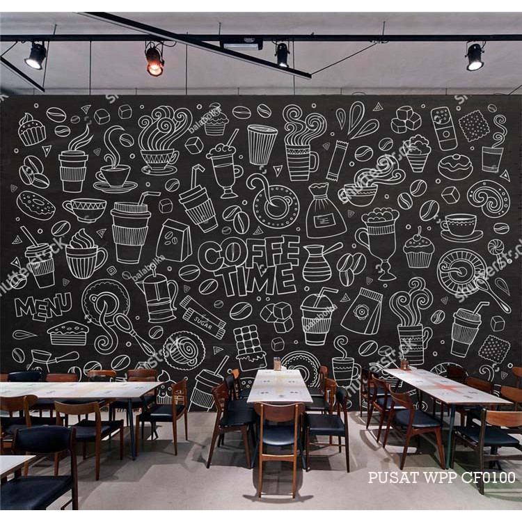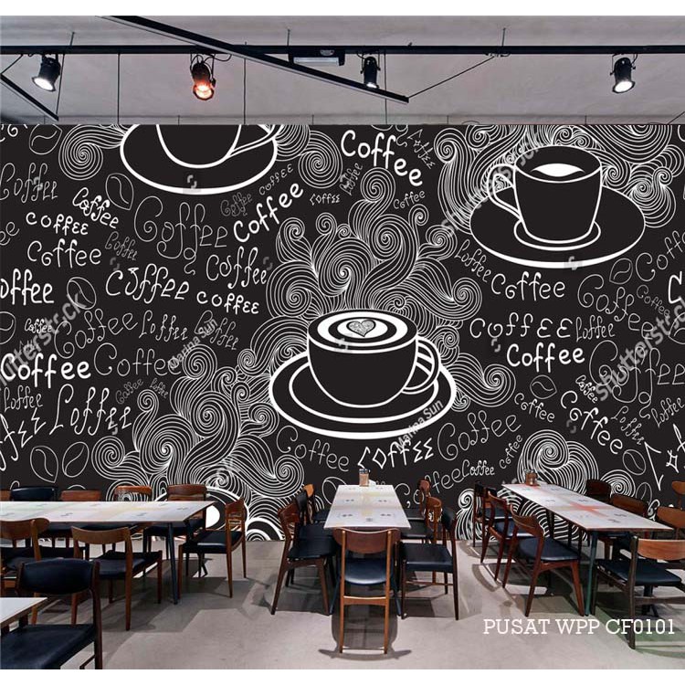 PROMO! Wallpaper Cafe - stiker Dinding 3d Murah- Wallpaper Cafe dekorasi dinding - Wallpaper Dinding Coffee shop - Wallpaper cafe custom 3d