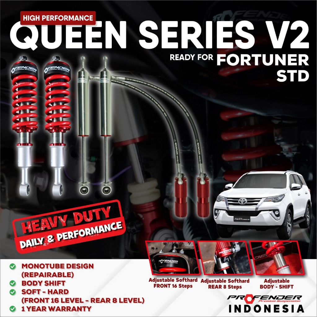 PROMO !!! [QUEEN SERIES] Suspensi Shockbreaker PROFENDER MONOTUBE 2.0 Toyota Fortuner 2GD 1GD 16+ 2015 2016 2017 2018 2019 2020 2021 2022 2023 2024 Dijamin Original Berkualitas Garansi 1 Tahun Awet Best For Offroad and Daily