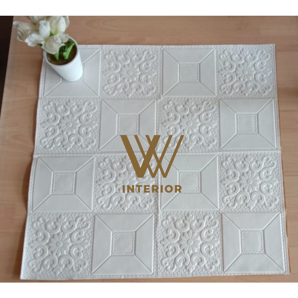 PROMO !!! Wallfoam 3D Wallpaper Motif Batik Putih BTK - C - 01 - 77 CM x 70 CM -