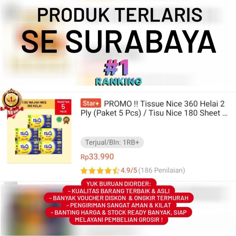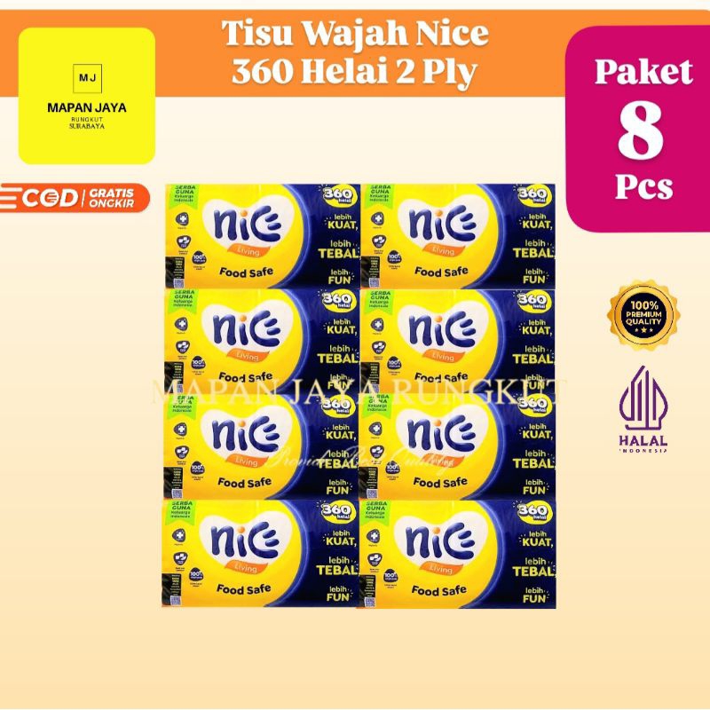 PROMO !! Tissue Nice 360 Helai 2 Ply (Paket 5 Pcs) / Tisu Nice 180 Sheet 2ply / Jolly / Tisu Dapur Serbaguna TERLARIS