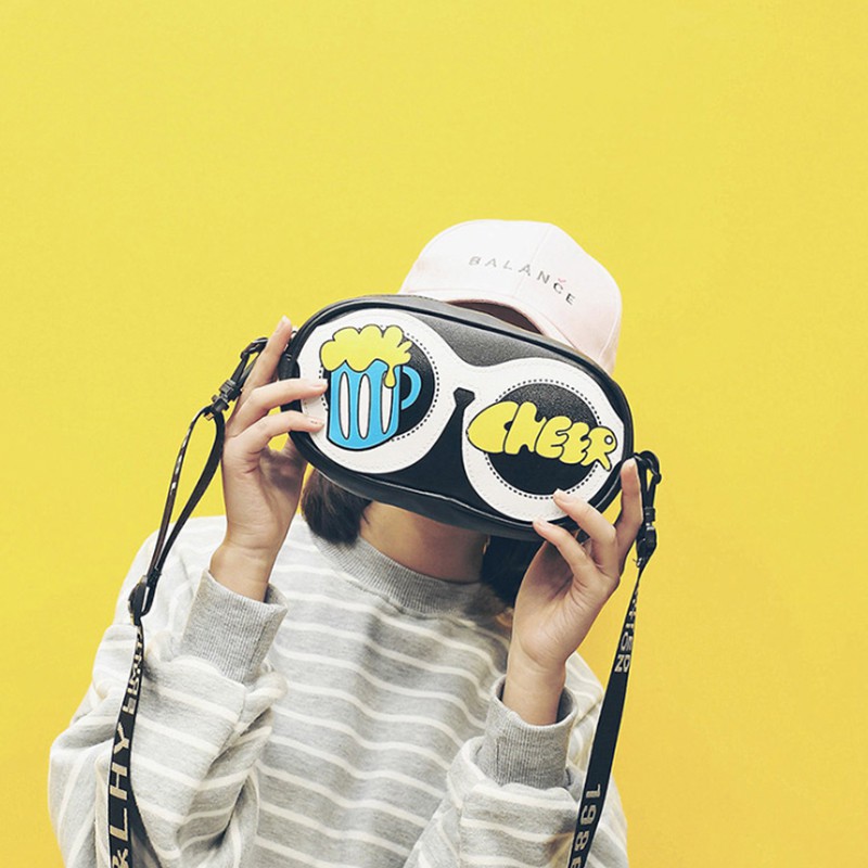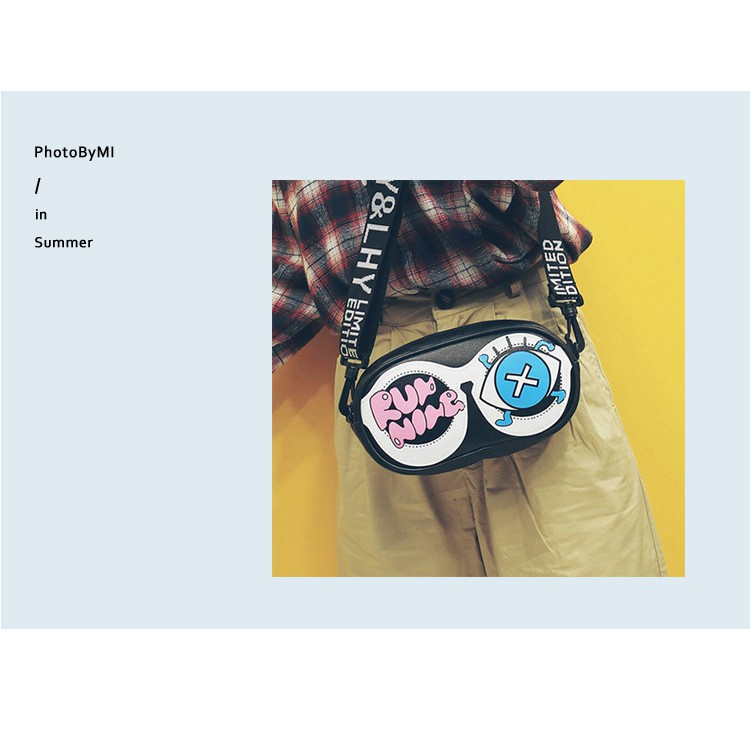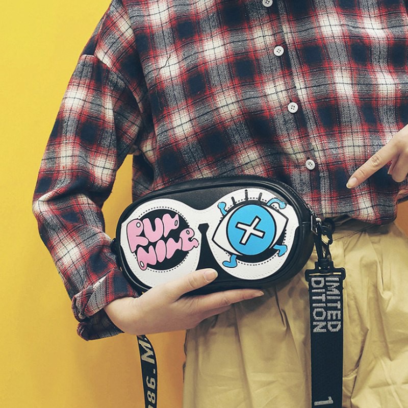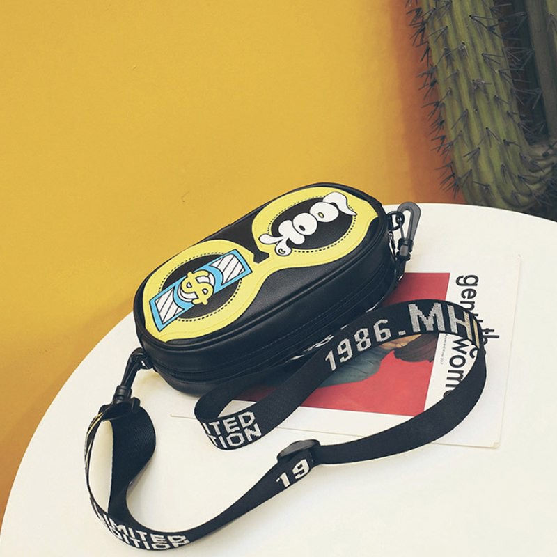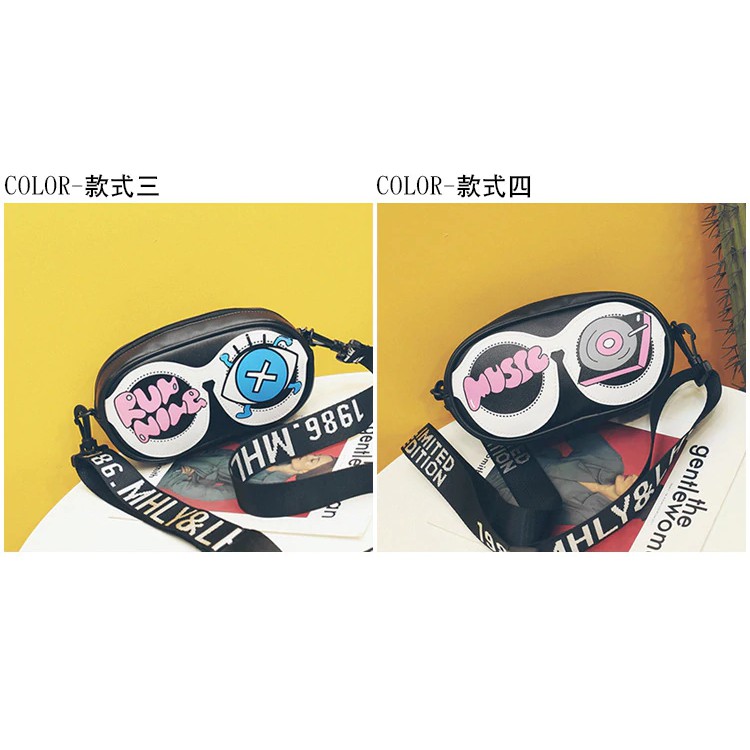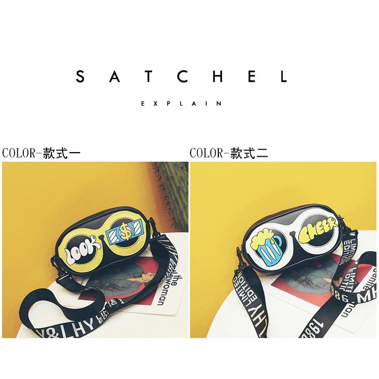 PROMO 2019 Tas Wanita Baru Lucu Kartun Kacamata Tas Kecil Tas Persegi Grafiti Huruf Bahu Lebar Tali