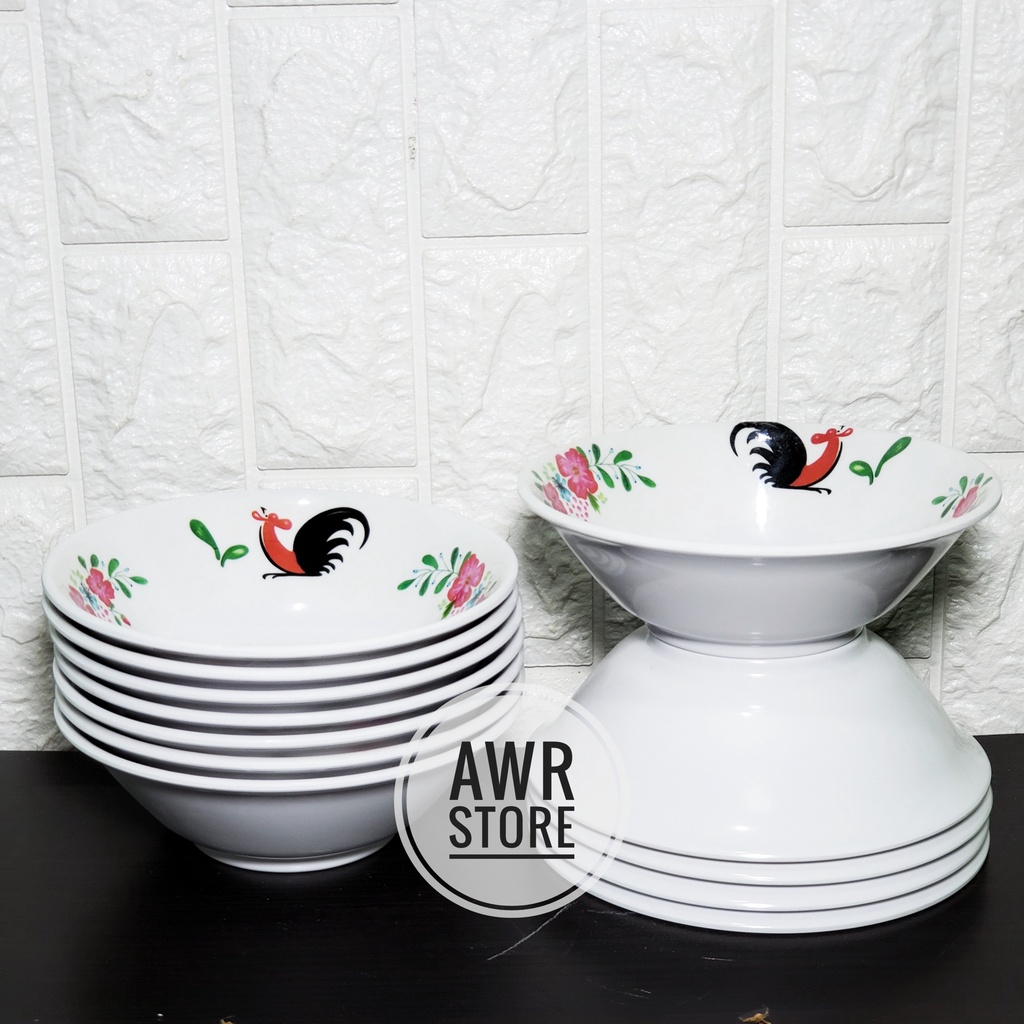 PROMO 6PCS MANGKUK BAKSO MELAMIN ASLI MOTIF AYAM DIAMETER 7INC 15CM T8CM