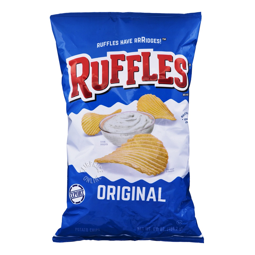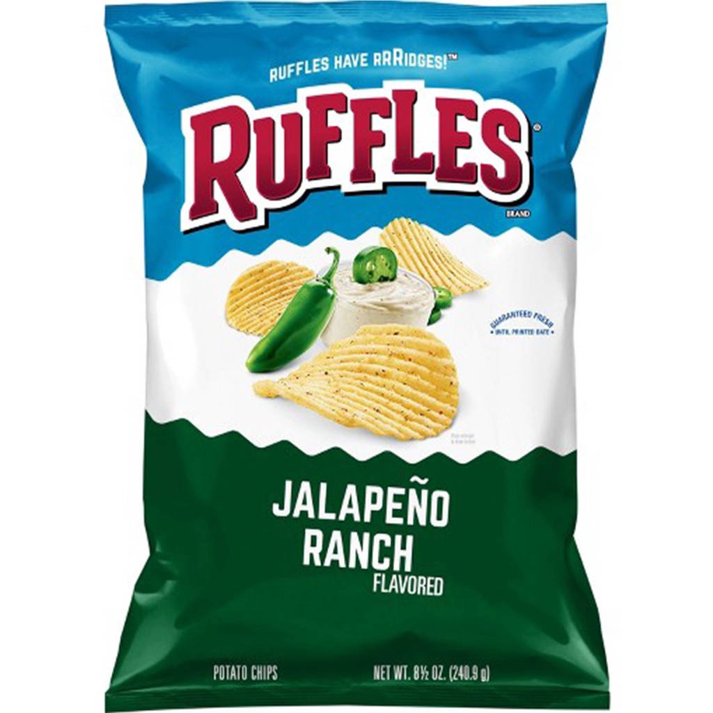 Ruffles Potato Chips Jalapeno, Flamin Hot, Sour Cream Onion 6.5 Oz