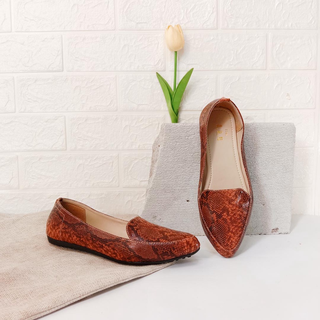 PROMO EXECUTIVE - Flat Shoes wanita ARNBD04 sepatu flat sepatu perempuan sepatu kekinian sepatu unik motif sepatu motif ular sepatu cewe motif ular sepatu bermotif sepatu teplek