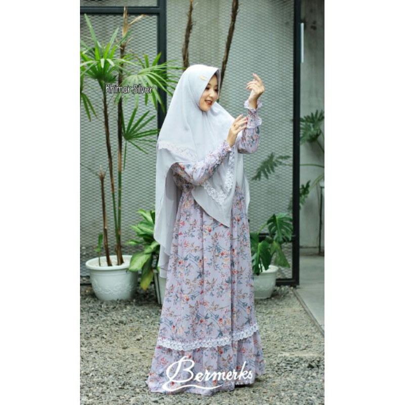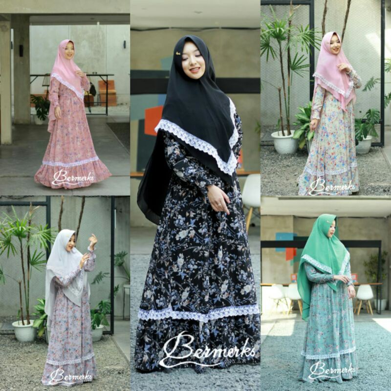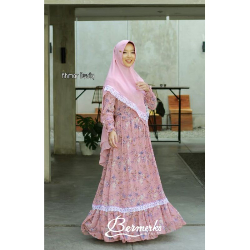 PROMO Gamis Ceruty Baby Doll Print Full Furing Set Khimar Ceruty Baby Doll 2 Layer Pad Antem