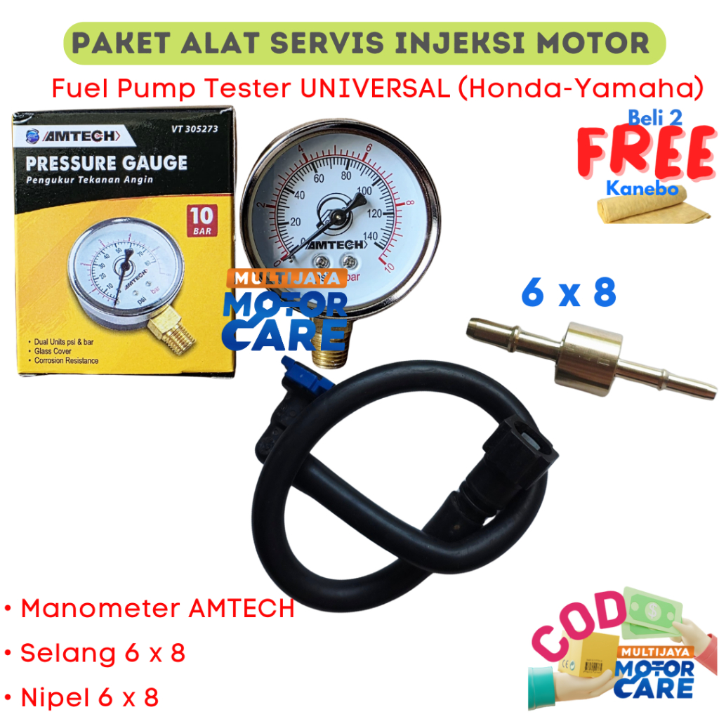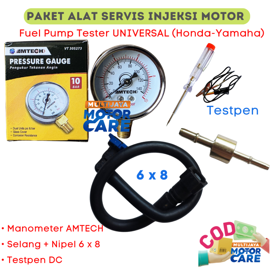 PROMO LENGKAP UNIVERSAL Fuel Pump Tester Pressure Gauge Alat Cek Pengukur Tekanan Pompa Bensin Motor Injeksi FuelPumpTester