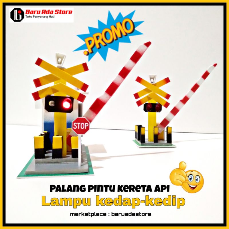PROMO MAINAN PALANG PINTU KERETA API MINIATUR LAMPU DAN POS PENJAGA SEPASANG PALANG PINTU KERETA API