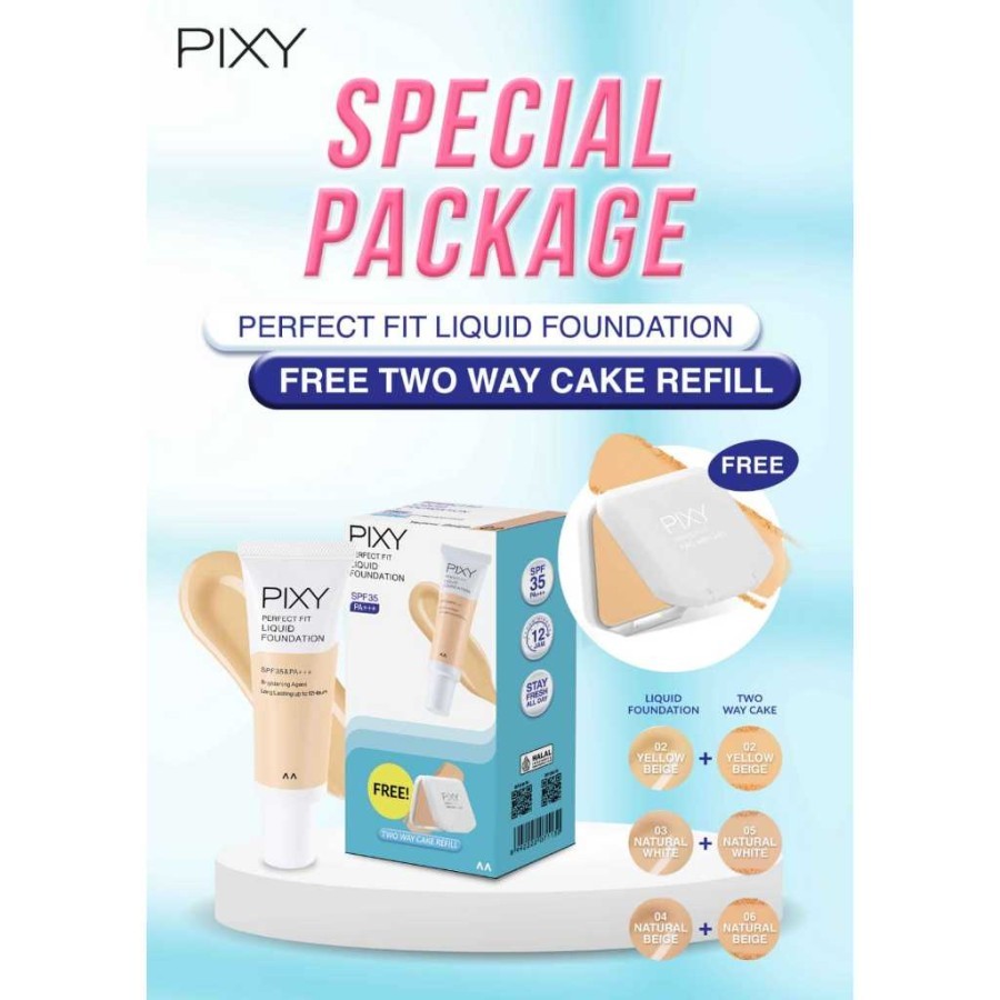 PROMO MERDEKA Pixy Perfect Fit Liquid Foundation + Free Perfect Fit Two Way Cake Refill
