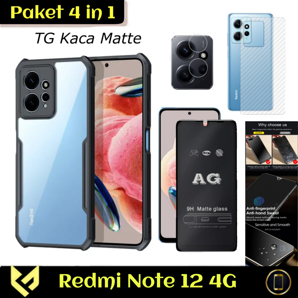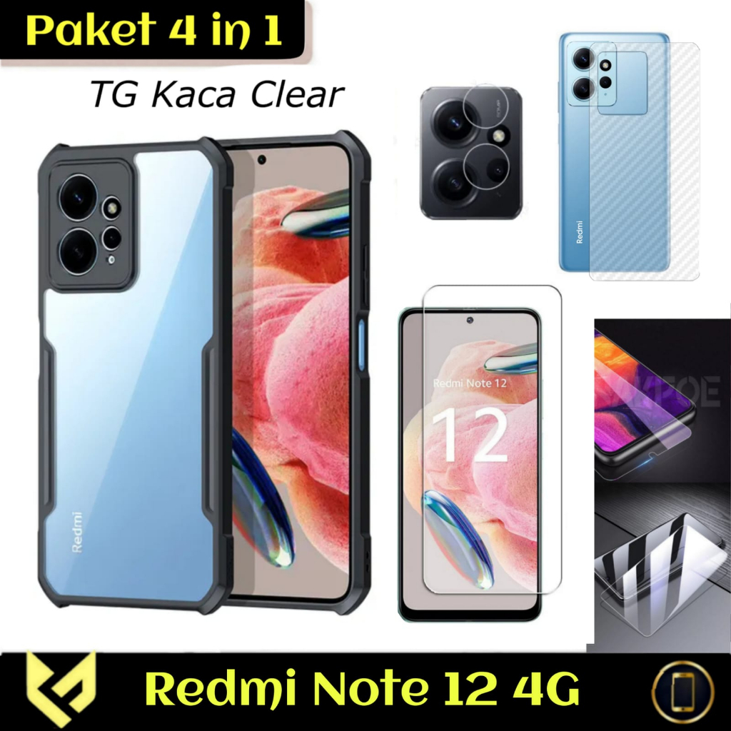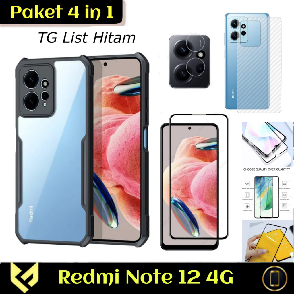 Promo Paket 4in1 Case Fusion REDMI NOTE 12 4G / REDMI NOTE 12 PRO 5G / REDMI NOTE 12 PRO 4G / REDMI 12 4G Free Anti Gores Layar & Tempered glass Camera & Skin Carbon