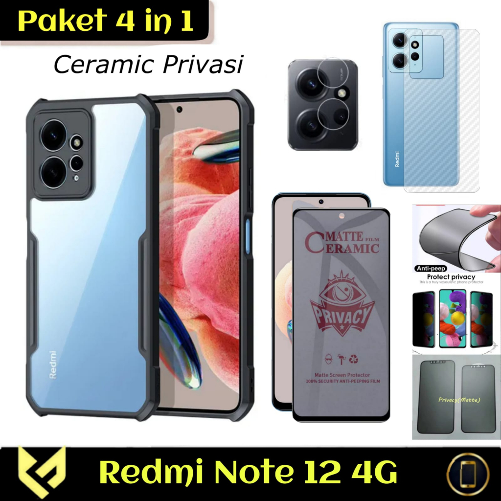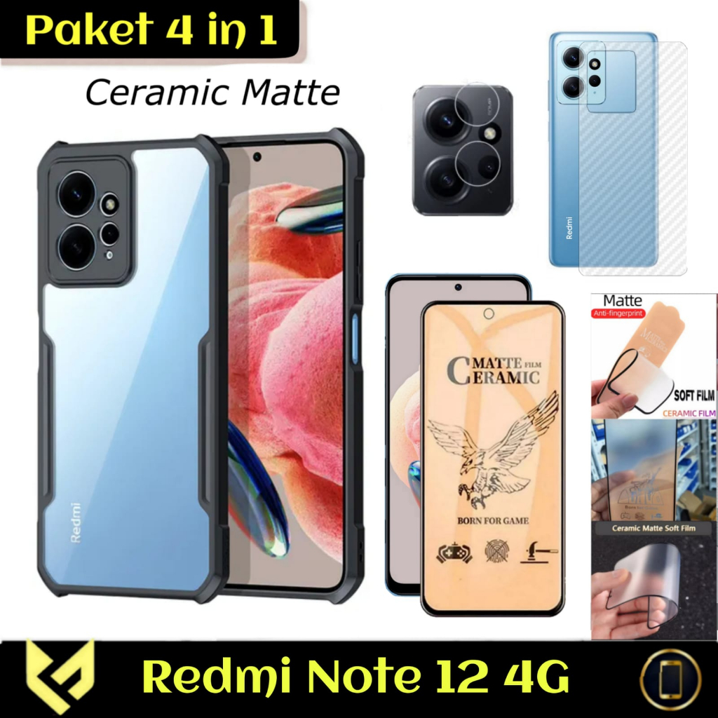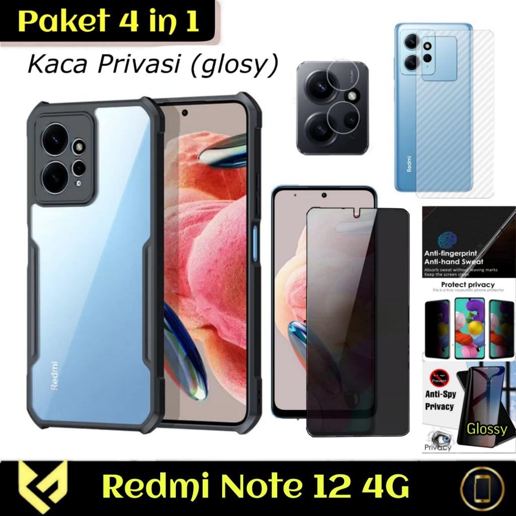 Promo Paket 4in1 Case Fusion REDMI NOTE 12 4G / REDMI NOTE 12 PRO 5G / REDMI NOTE 12 PRO 4G / REDMI 12 4G Free Anti Gores Layar & Tempered glass Camera & Skin Carbon