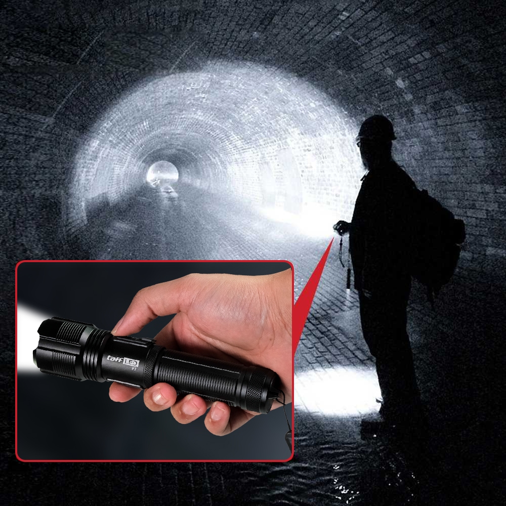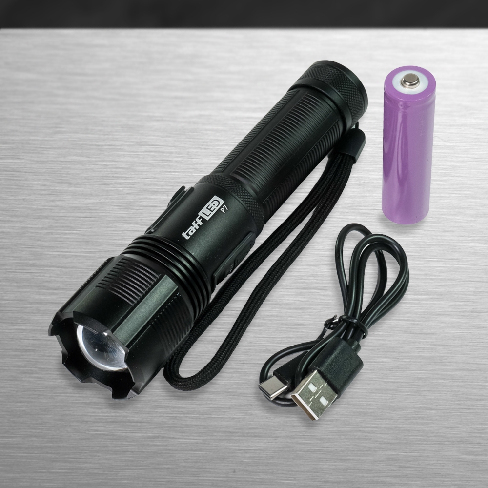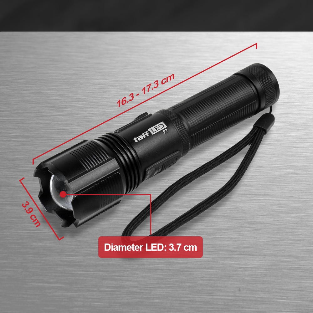 PROMO TAFFLED SENTER LED TACTICAL FLASHLIGHT ZOOMABLE HEAD XHP70 400 LUMENS P7 BLACK TERMURAH