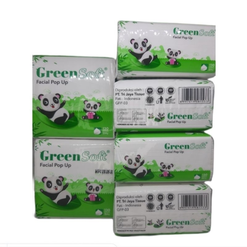 PROMO TISU GREENSOFT POP UP PANDA 130 sheets / TISSUE GREEN SOFT POP UP / TISU WAJAH PERSEGI FACIAL 2 PLY