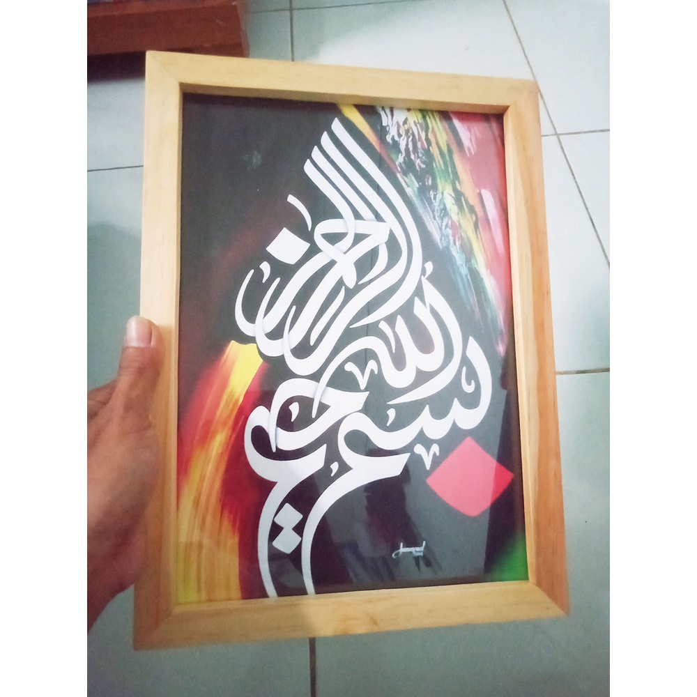 PROMO kaligrafi + bingkai kayu / kaligrafi estetic figura kayu / bingkai kaca minimalis / kaligrafi bismillah hiasan dinding